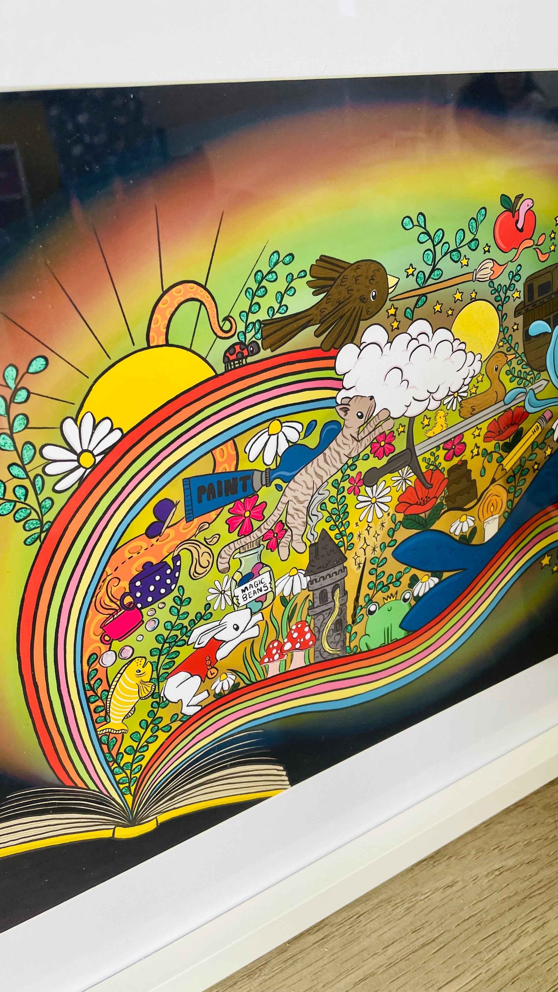 This illustration was created from my family’s love of books and the escapism that can be found in their stories.