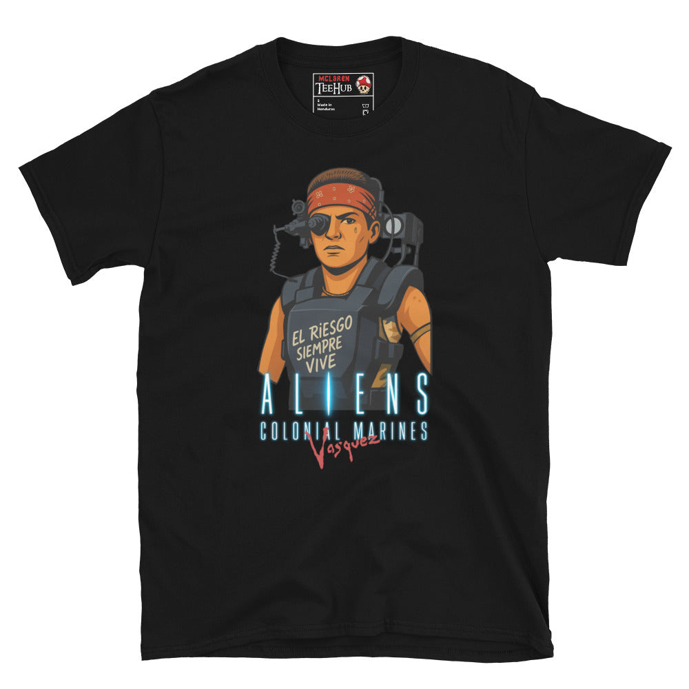 Aliens Colonial Marines Vasquez T-Shirt – El Riesgo Siempre Vive – Sci-Fi Movie Graphic Tee