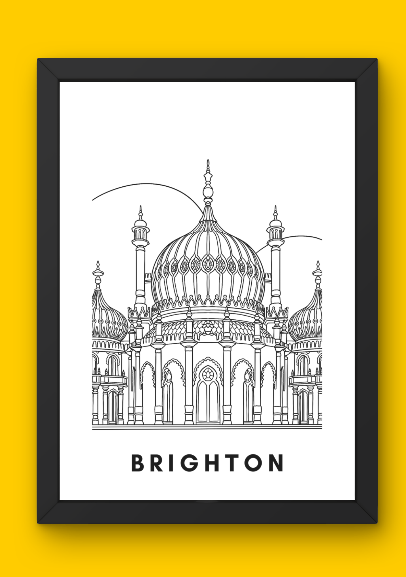 Beautiful wall art / poster of the Royal Pavilion in Brighton. The poster can be left as is, or coloured in as preferred.