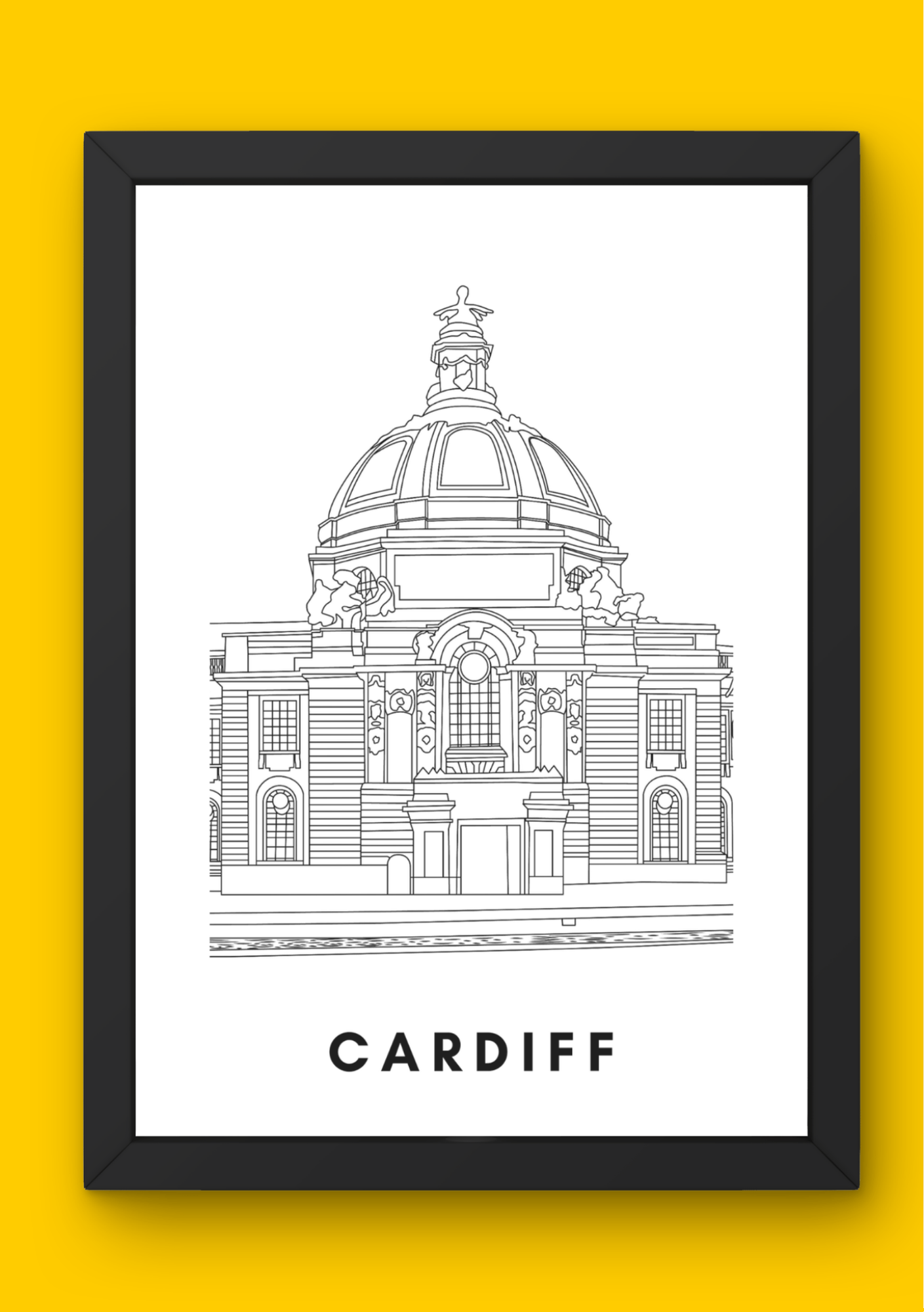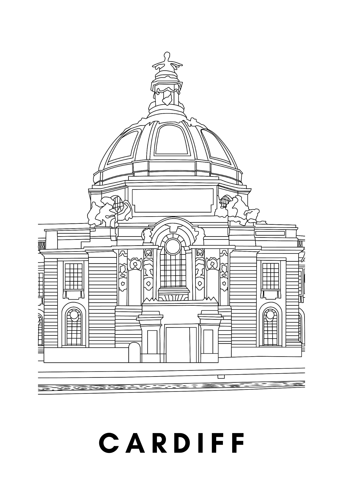 Beautiful wall art / poster of the City Hall in Cardiff. The poster can be left as is, or coloured in as preferred.