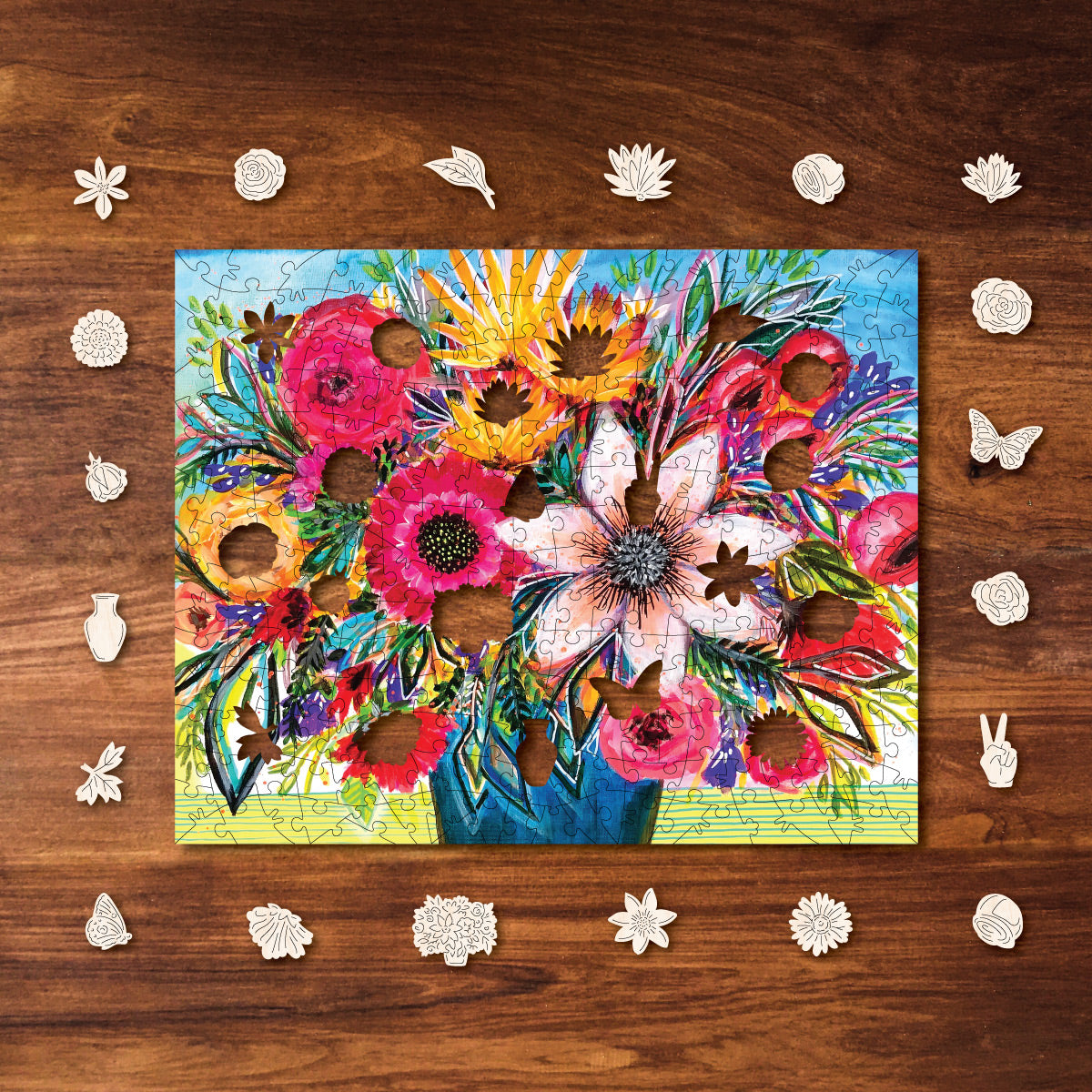 This delightful puzzle contains lots of whimsy pieces. Unique connectors including our signature 'V' knobs will enhance your puzzling experience!
