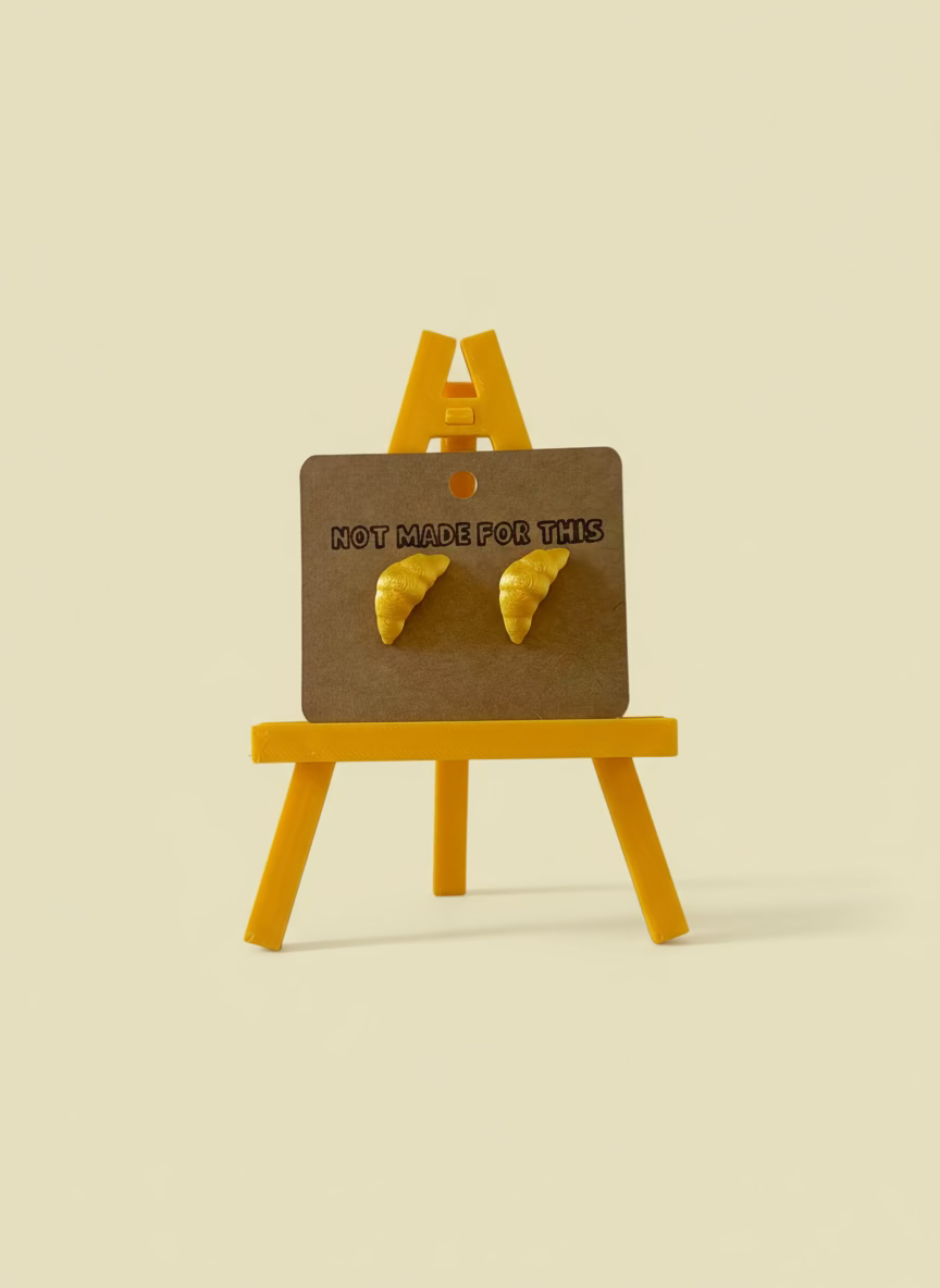 Tiny, buttery and zero calories - these golden croissants declare loud and proud that you’re a snack for the bold. Hand‑printed in Sussex, each one sits on stainless‑steel posts so you can rock them all day without the weight.