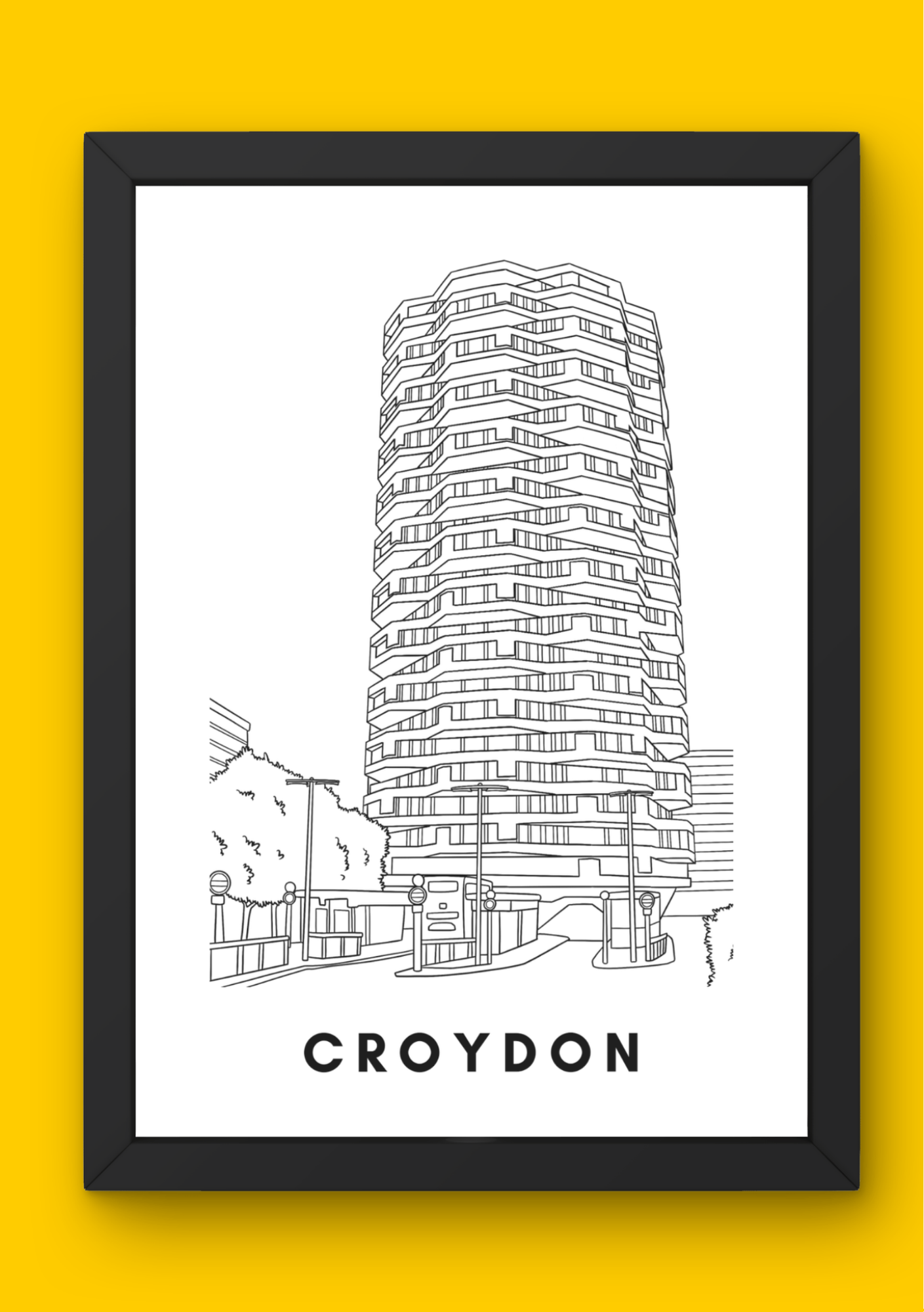 Beautiful wall art / poster of No 1 Croydon in Croydon. The poster can be left as is, or coloured in as preferred.