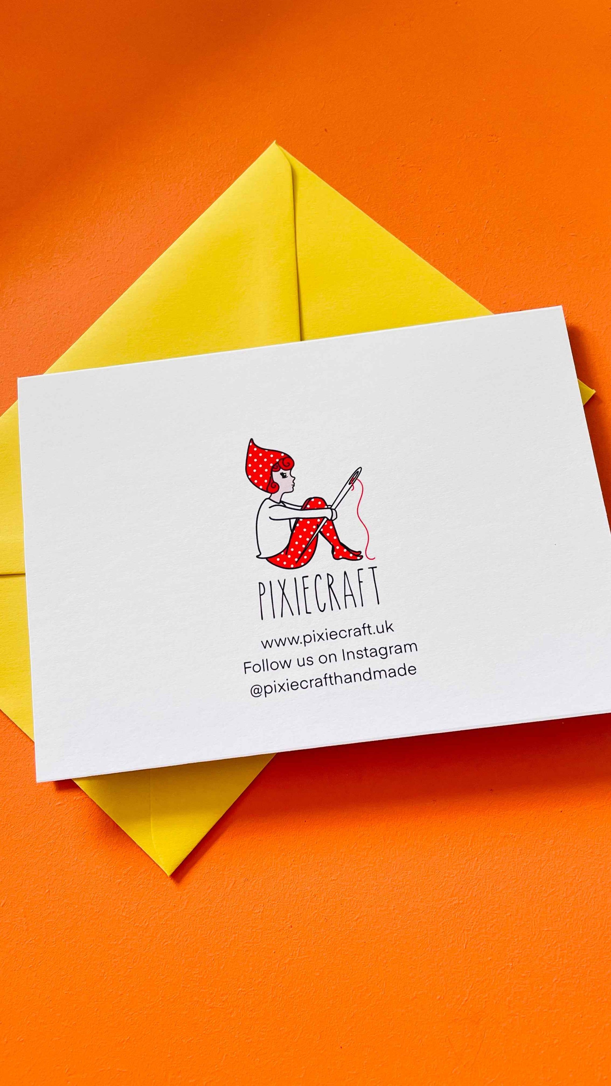 This original illustration from Pixiecraft this card is blank on the inside for your message and is approx A6. Comes with a co-ordinating colourful envelope made from recycled paper.