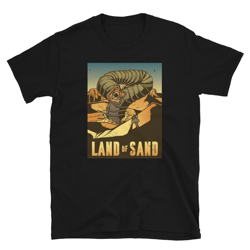 Immerse yourself in the epic world of Dune with this striking Shai-Halud sandworm T-shirt. The Shai-Halud, known as the giant sandworm of Arrakis, plays a crucial role in Frank Herbert's saga, guarding the precious spice melange that fuels interstellar travel and enhances human abilities. This design celebrates the iconic sandworm from the original 1984 film and the breathtaking adaptations from two thousand twenty-one and two thousand twenty-four. Made from soft, breathable fabric, this T-shirt is perfect for fans of Dune, Dune merchandise, and science fiction lovers alike. Whether you're exploring the desert planet or relaxing at home, this shirt showcases the awe-inspiring power and mystique of the Shai-Halud. Stand out in style and show your love for Dune with this unique T-shirt that honors its cinematic legacy and the rich lore of Arrakis!.