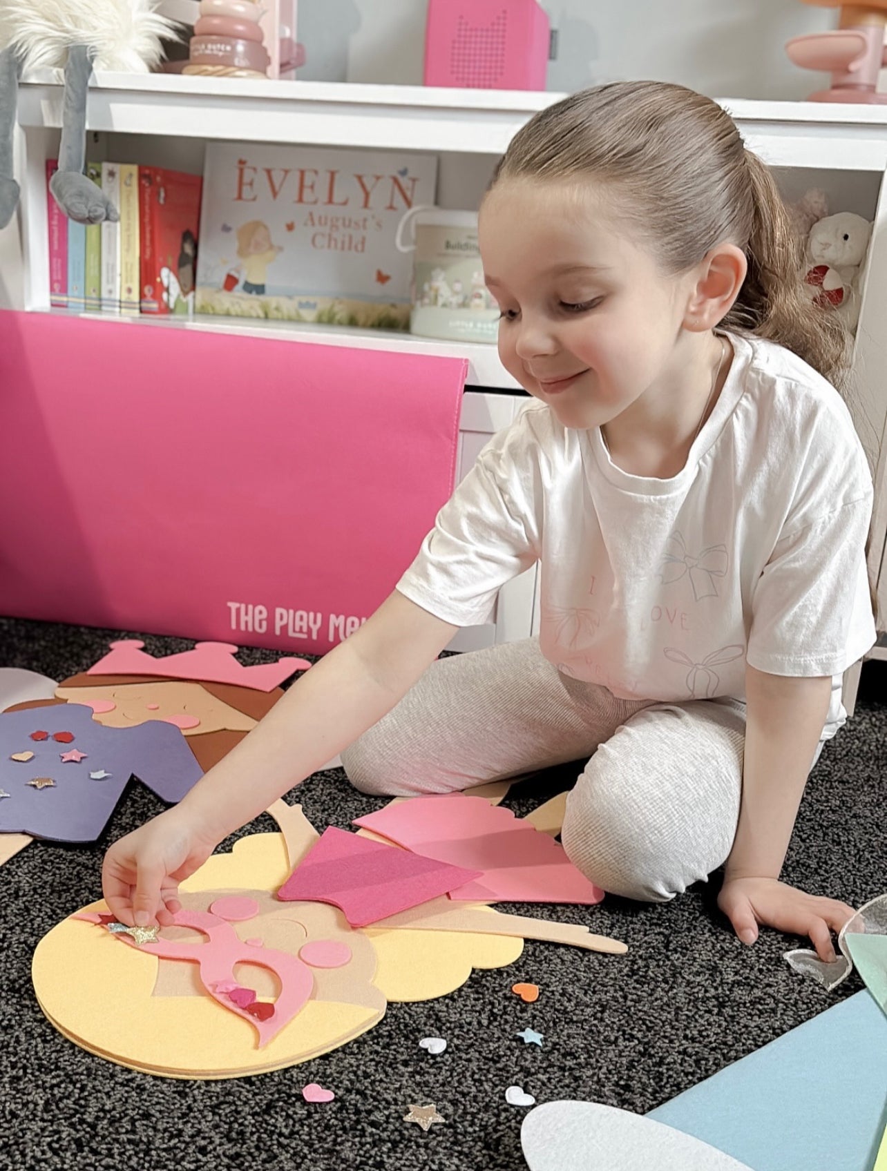 Inside her oversized 60 cm felt envelope, you’ll find everything your child needs to style, re-style, and play all day.