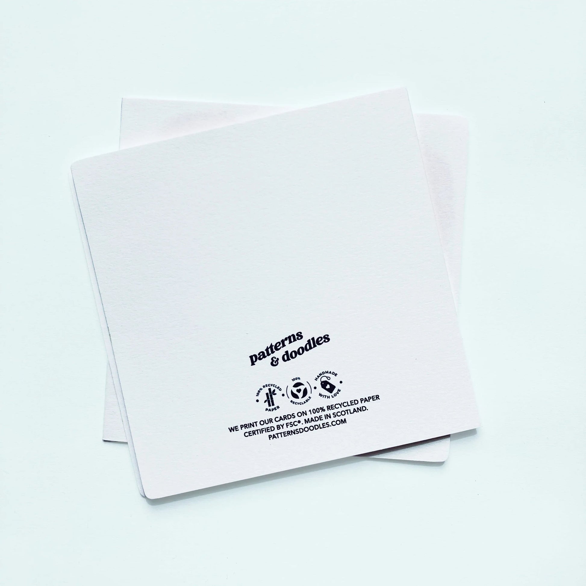 The card's interior is blank, allowing you to add your own message. Proudly made in Scotland. Printed on 300gsm high-quality, softly textured cardstock.
