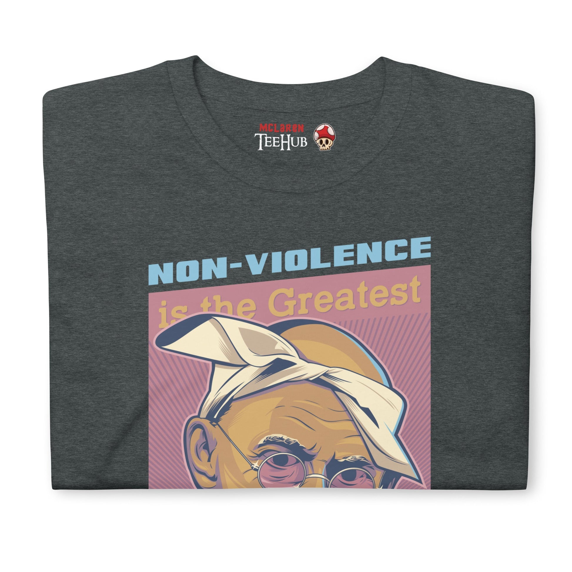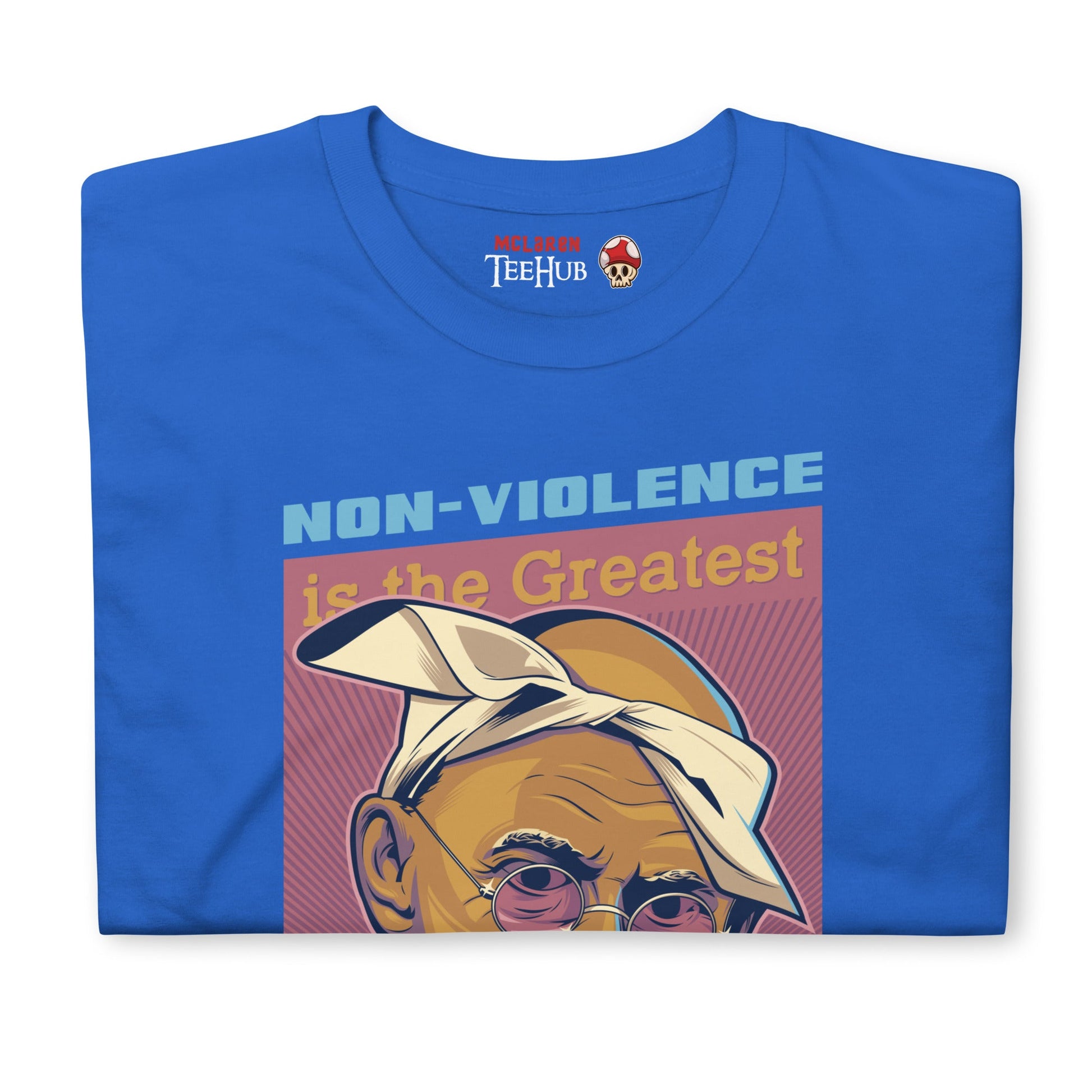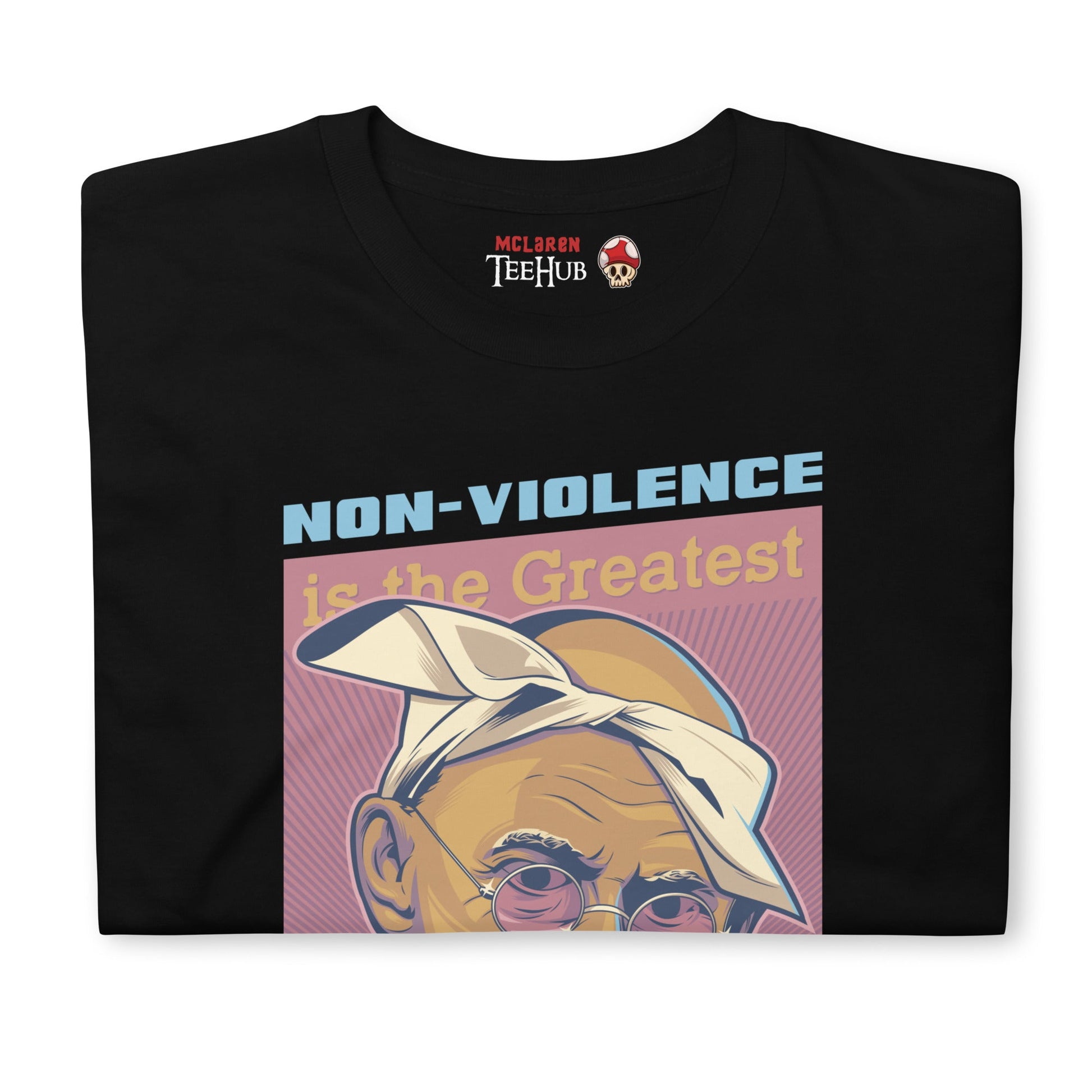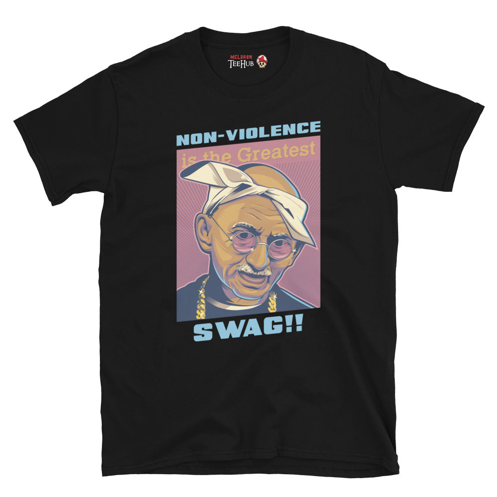Make a bold statement with our unique Gandhi-meets-Tupac T-shirt! This eye-catching design features the iconic peace advocate Gandhi styled as the legendary rapper Tupac. Perfect for fans of history and hip-hop, this shirt is made from high-quality fabric for ultimate comfort. Add a touch of uniqueness to your wardrobe with this creative, pop culture fusion. Ideal for those who appreciate a mix of historical icons and modern-day legends, this T-shirt is a must-have for any collection.