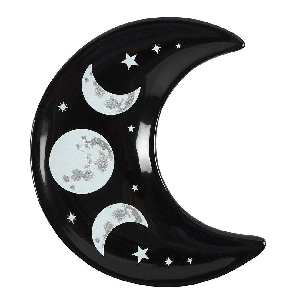 This awesome black crescent moon shaped trinket dish features a contrasting white triple moon and stars print. With a glossy finish, this bone china dish is perfect for keeping your bits and bobs safe in one spot or just as a decoration.