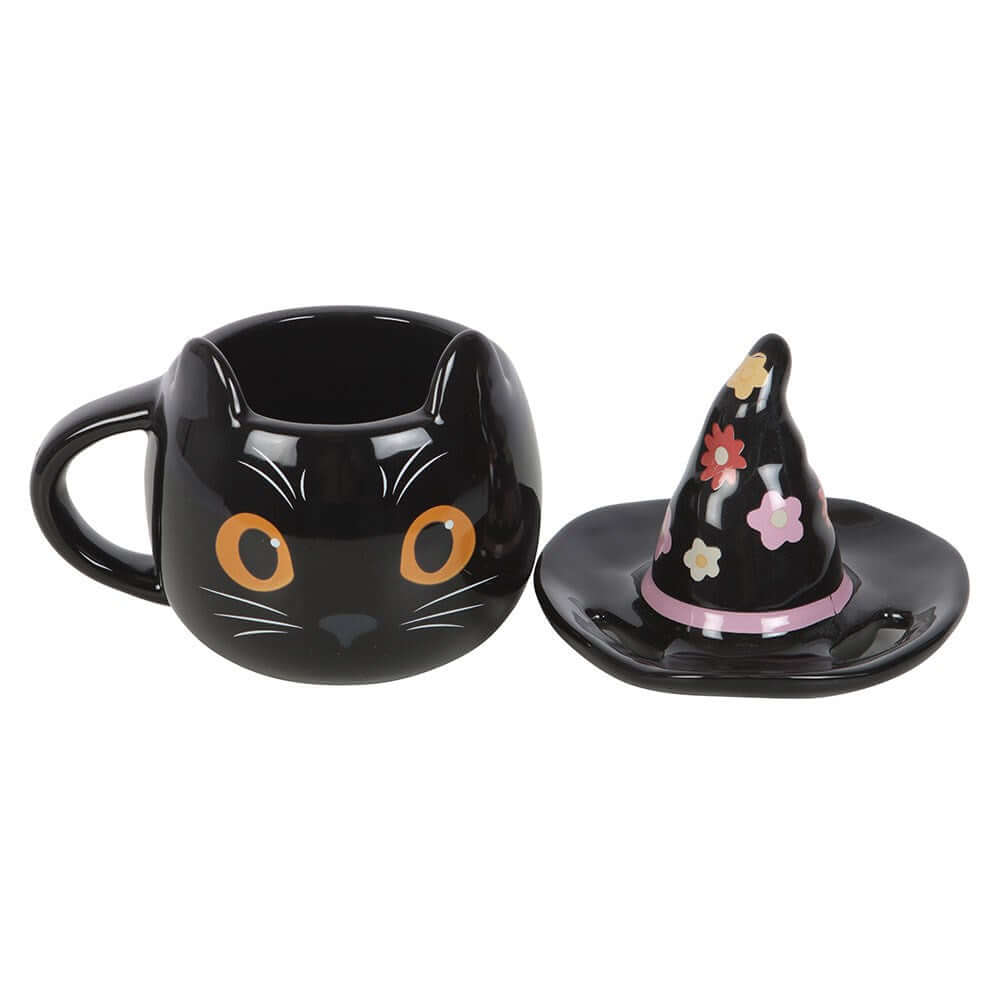 Gothic Gifts Groovy Witch Cat Lidded Mug