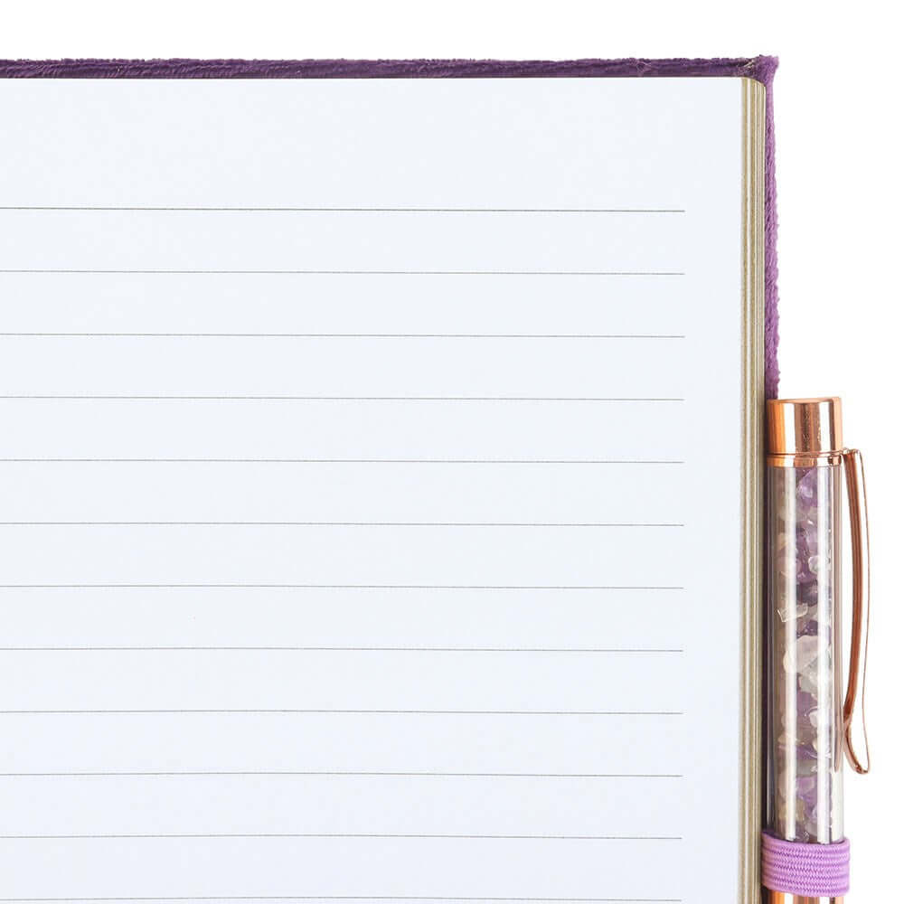 This Gothic Gifts Journal features a Book of Spells print and comes with an Amethyst Crystal Pen to aid in promoting clarity and eliminating negative thoughts. Keep all your rituals, spells, and personal musings organized in its lined pages. Part of the magical Wands and Witchcraft range, this journal boasts a purple cover with mystical, metallic gold detailing and a gold ribbon page marker. With 100 sheets (200 lined pages), it is the perfect tool for any witch or wizard seeking to record their experiences.