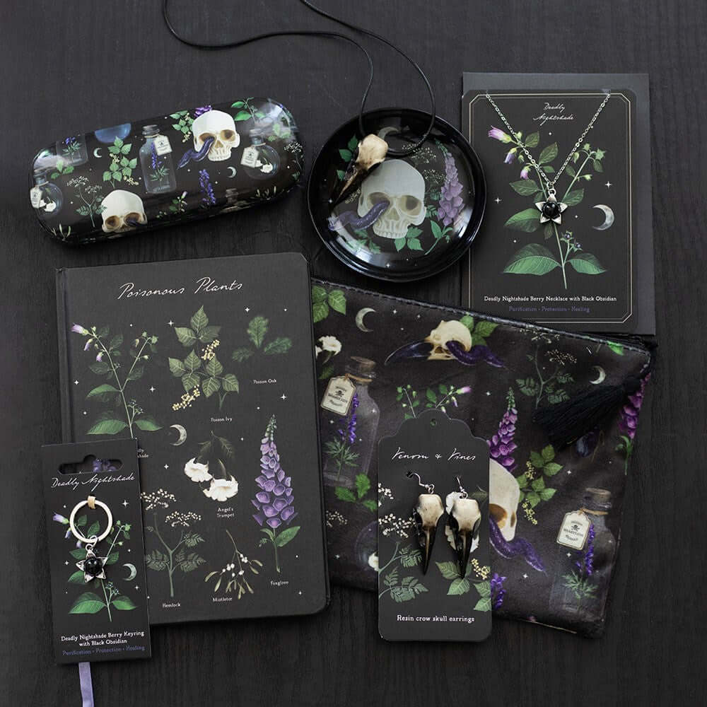 Keep your little treasures safe in style with this playful ceramic trinket dish, featuring a bold skull and snake design. Ideal for jewellery, keys, or tiny keepsakes, it adds a quirky gothic touch to any dresser or bedside table. A perfect gift for fans of dark and daring decor, this piece from the Venom and Vines collection, brings a fun twist to your space.