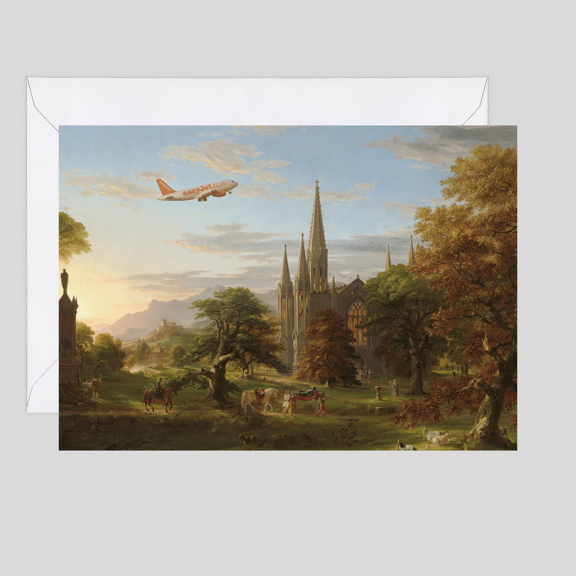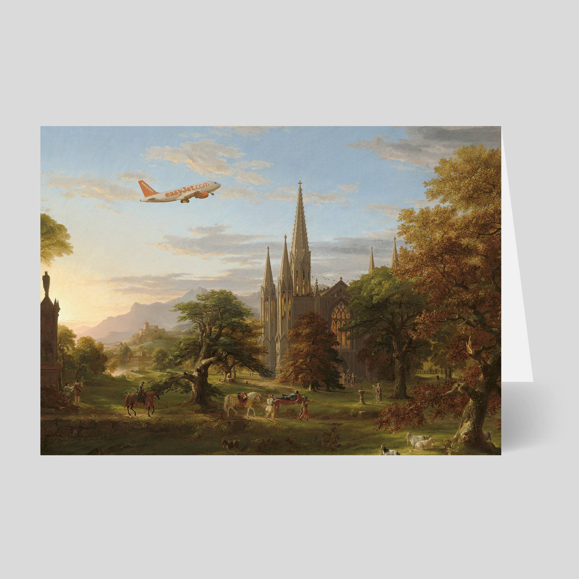 As EasyJet soared above the spires of an old master's canvas, the passengers couldn't help but wonder if they were in an interactive flight simulator or if the artist had indulged in a bit too much absinthe while painting their picturesque countryside.