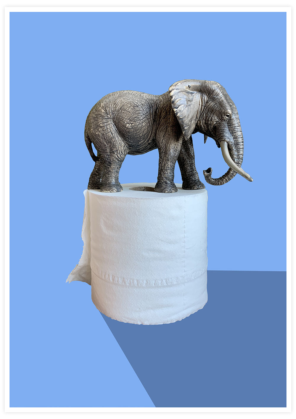 Herd Immunity Art Print certainly brings the laughs but has a serious message. Herd immunity does not work, so Eddie the elephant decided to self isolate on one of his many rolls of toilet paper so he was a safe distance from others. It's all in the messaging folks!