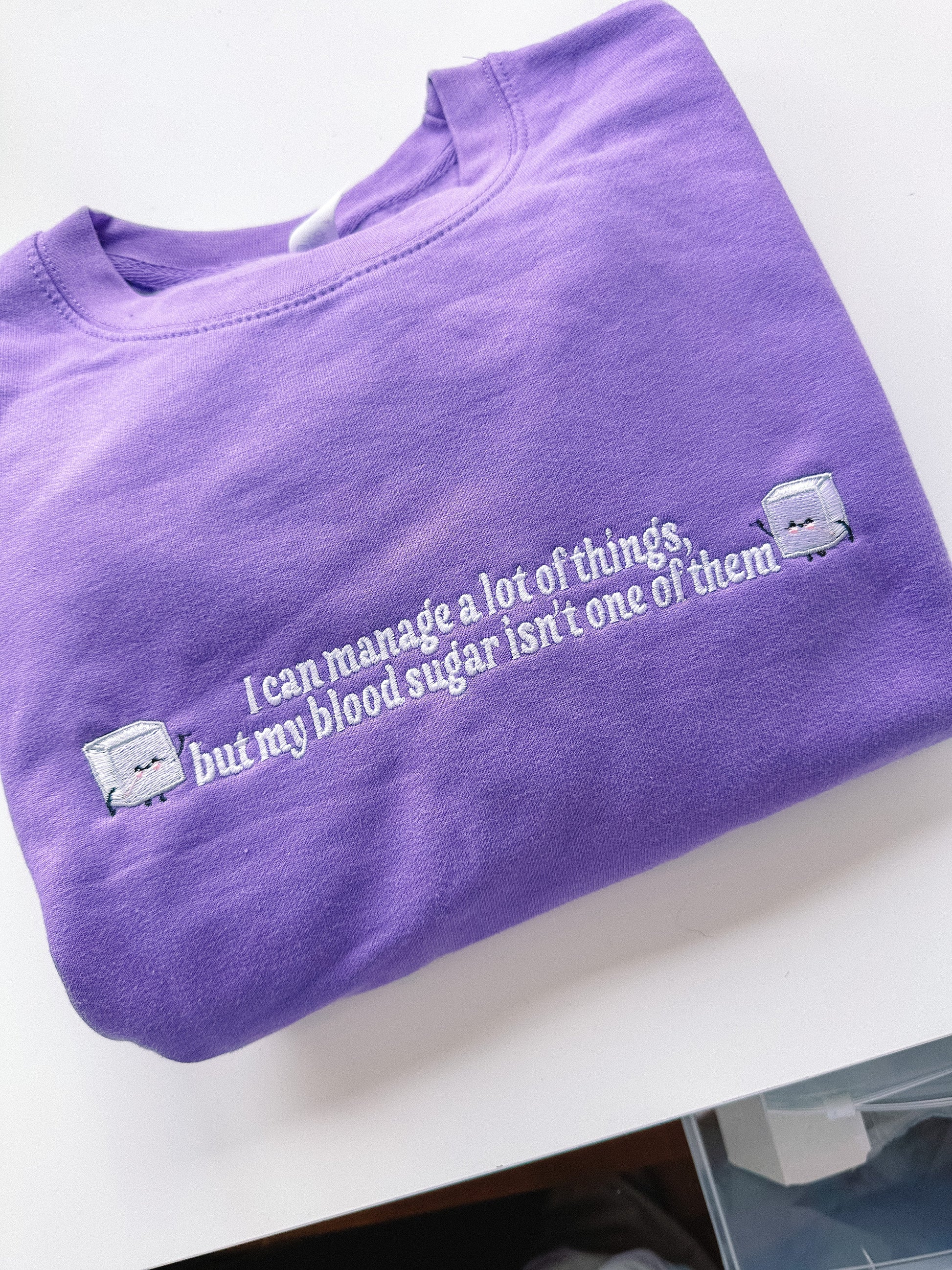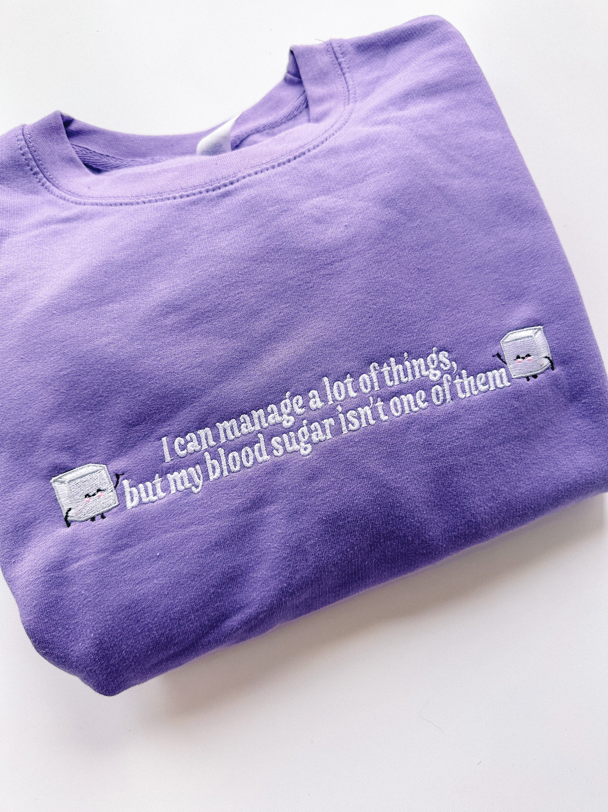 I Can't Manage My Blood Sugar embroidered sweatshirt