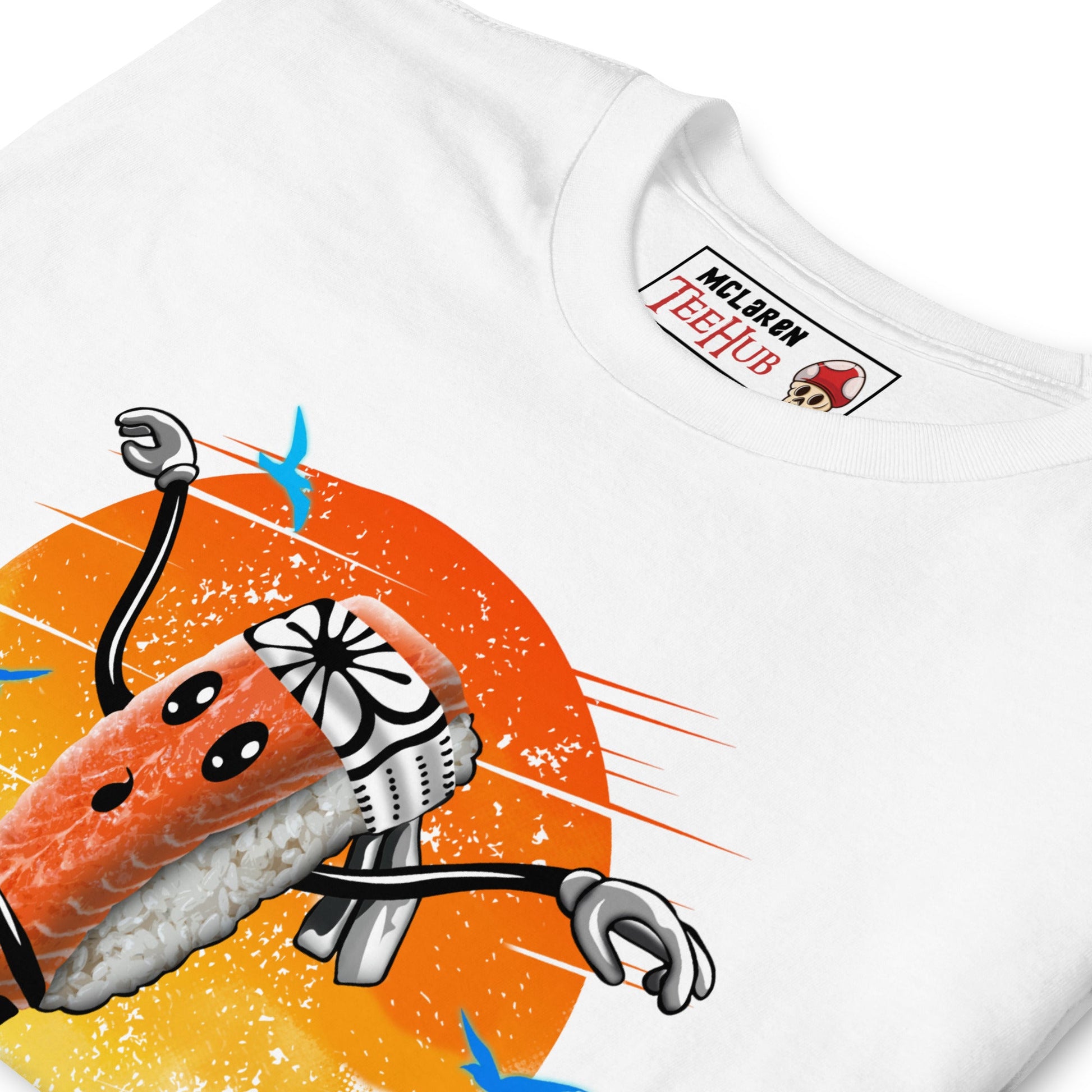 Discover the ultimate fusion of pop culture and culinary art with our Karate Kid Sushi T-Shirt! This unique apparel features a clever crossover between The Karate Kid franchise and sushi, depicting Daniel LaRusso as a piece of sushi. Perfect for martial arts enthusiasts and sushi lovers, this T-shirt is a must-have for fans of the iconic movie series. Crafted for comfort and style, it’s ideal for showing off your love for classic '80s films and Japanese cuisine. Elevate your wardrobe and your search rankings with this one-of-a-kind Karate Kid Sushi T-shirt today!