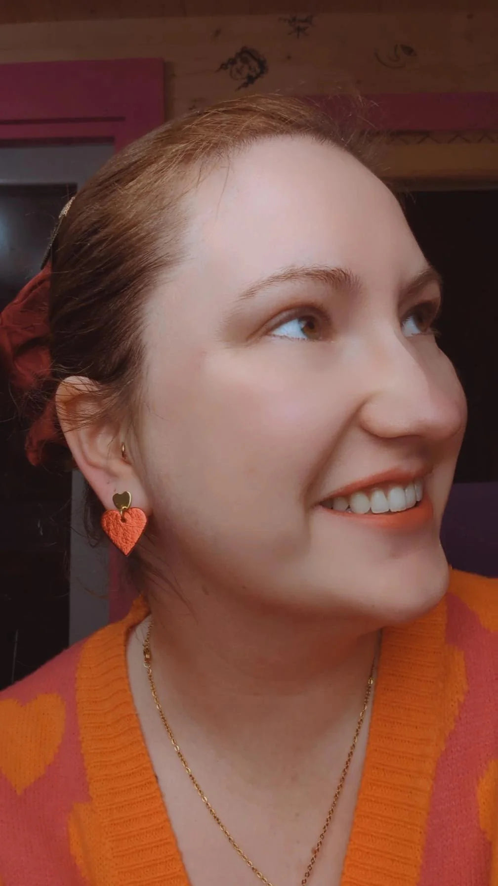 Delicate, dazzling, and full of charm, Lovestruck Leigh’s Heart Earrings are here to steal the spotlight this Valentine’s season. Featuring a sleek metallic red or pink heart paired with a heart-shaped gold or silver stainless steel stud top, these earrings are perfect for anyone who loves a chic, understated look.