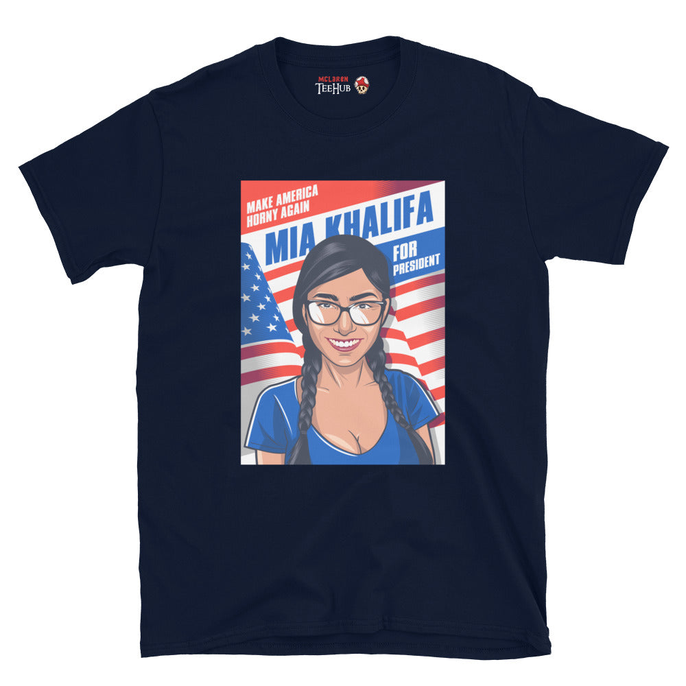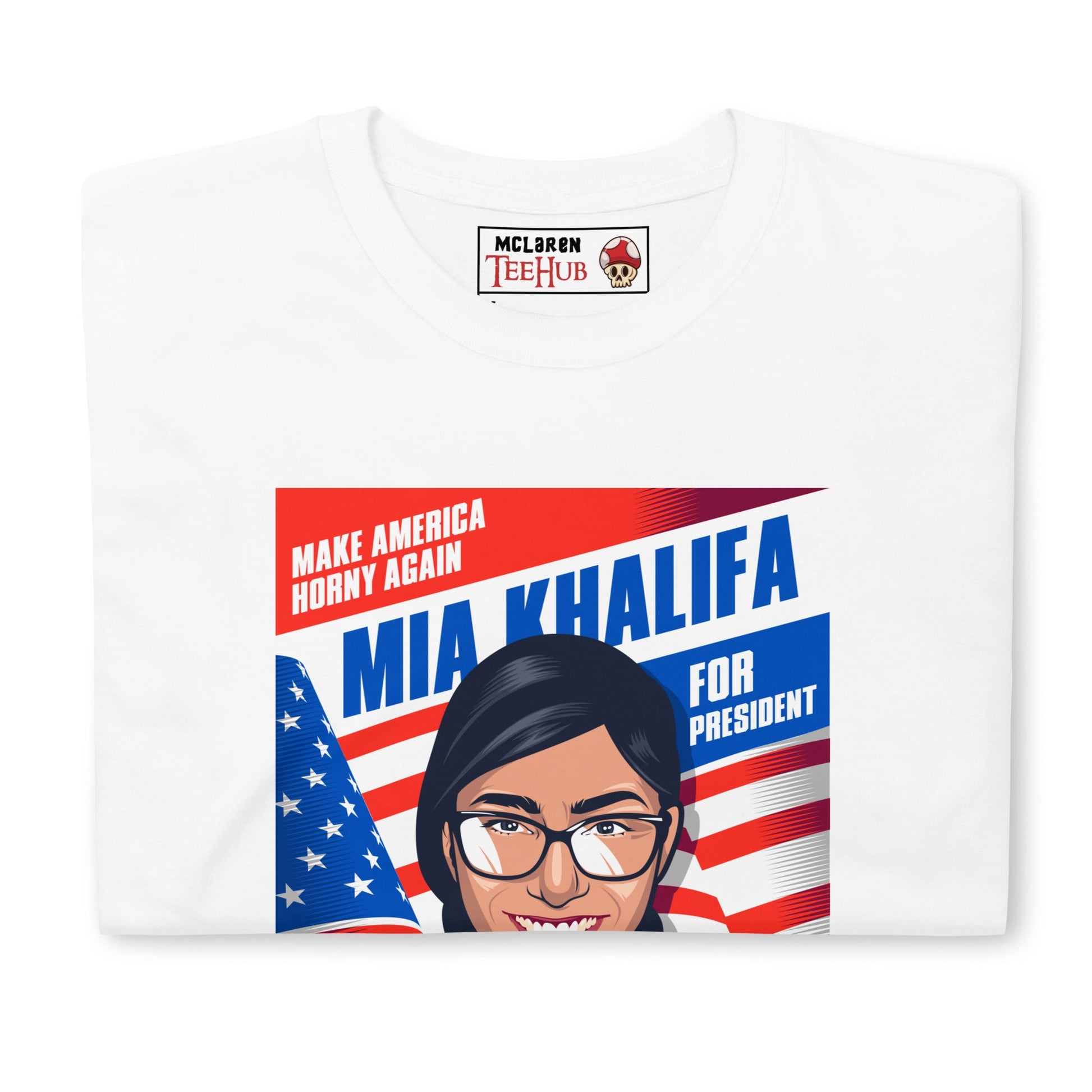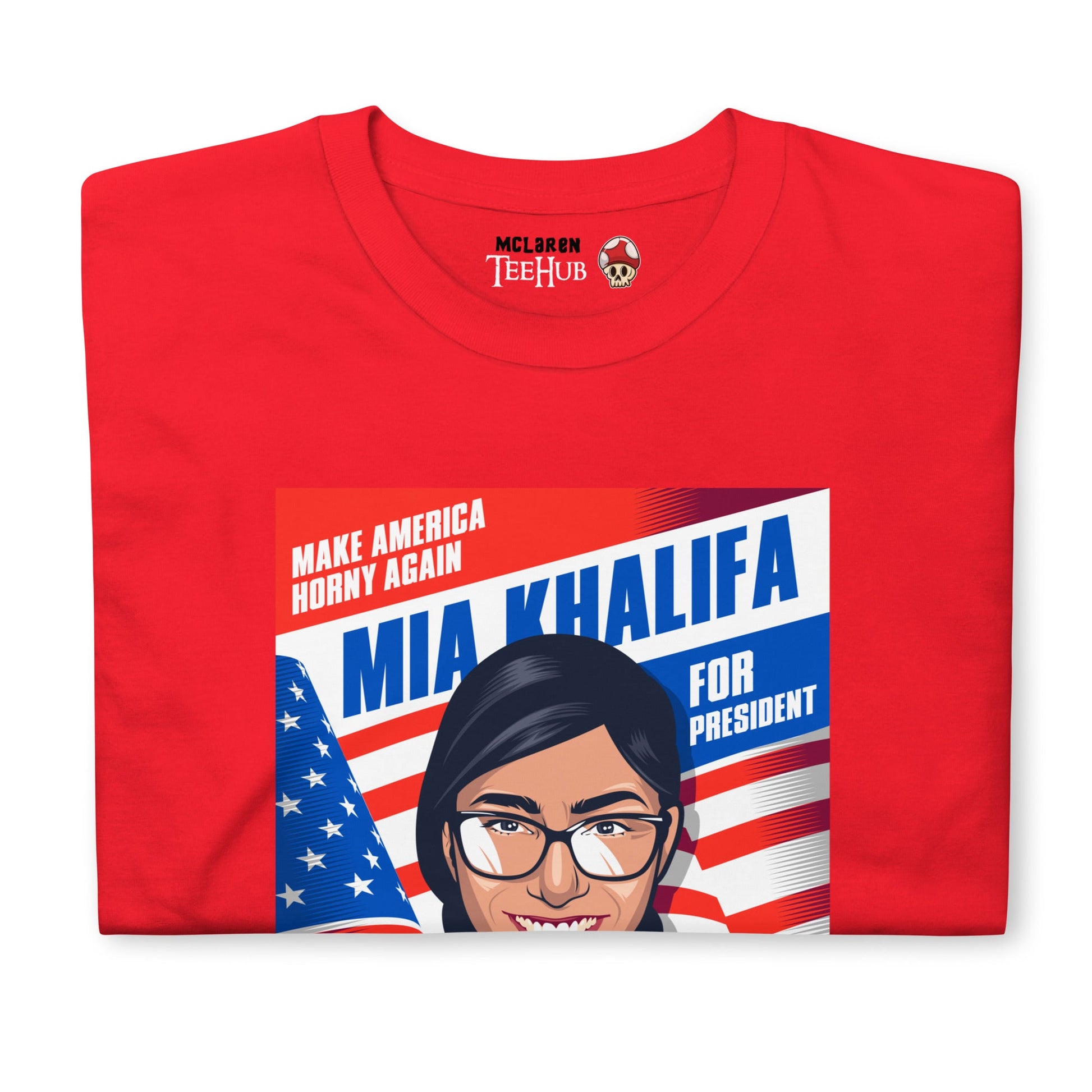 Make a bold statement with our exclusive 'Mia Khalifa for President' T-shirt, featuring a vibrant image of the popular celebrity. Perfect for fans and fashion-forward individuals, this T-shirt is crafted from high-quality, comfortable fabric, perfect for casual wear. Ideal for showcasing your unique style and sparking conversations, this T-shirt is a must-have addition to your wardrobe. Shop now to elevate your fashion game!