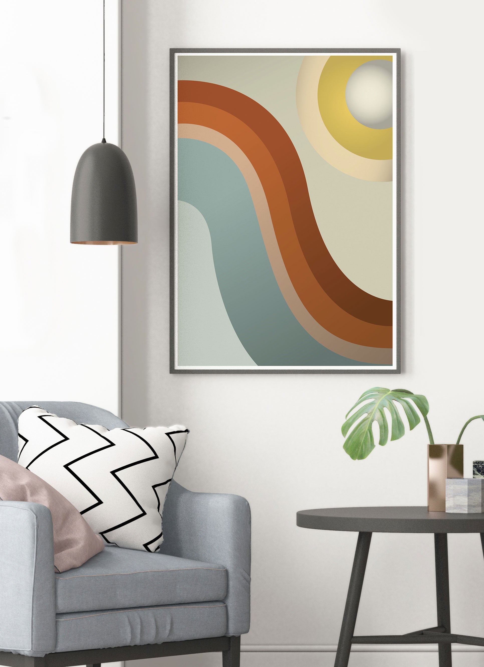 This abstract wall art is digitally created and prints super sharp to any size so you know those curvy shapes and clean looks will look fantastic. There is something humble about even the simplest of designs. you may look at this print and see the sun shining, or a mountain range. Whatever you see with Moon Walk you will be guaranteed to inject a retro aesthetic to your home or office.