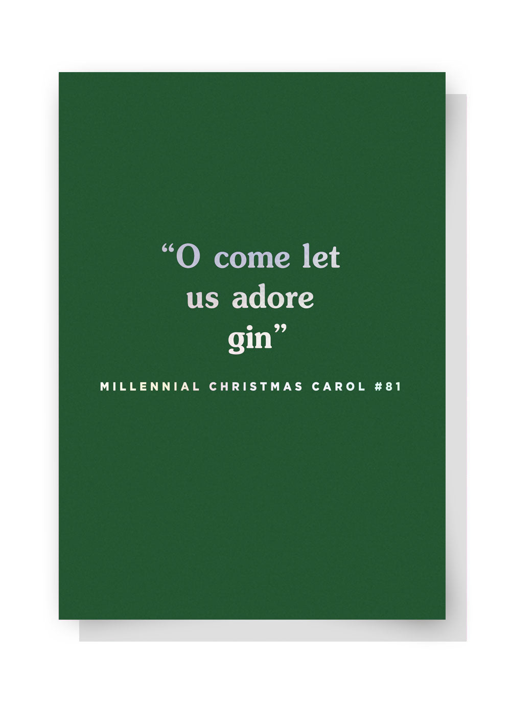 O Come Let Us Adore Gin Holographic Foil Christmas Card