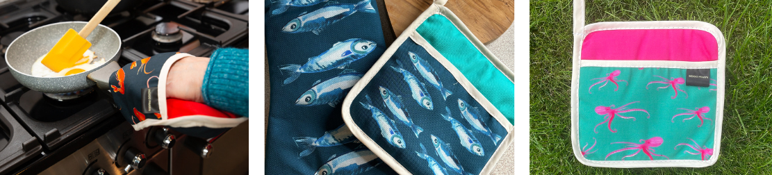 Discover the ultimate in pot-grabbing power with Pantastic Pot Grabs! Expertly crafted from 100% Panama cotton and featuring my unique, handpainted illustrations, these pot grabs are heat resistant and made in the UK. Enjoy a safe and secure grip on all your pots and pans.