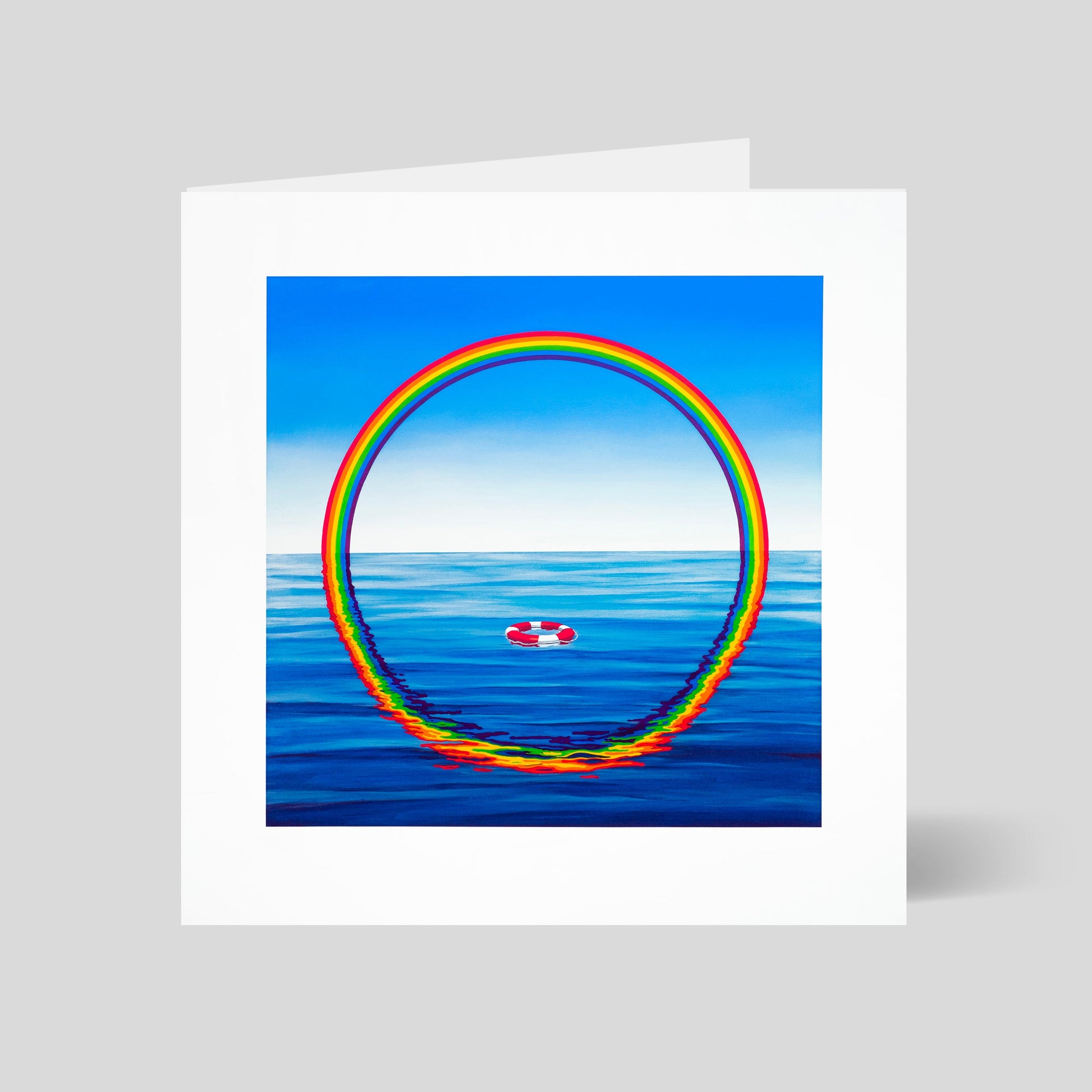 Patrick held his first solo show in 1961 at the Portal Gallery, London. It was the first one-man show by a Pop Artist, though they were not even called that then. A few years later, Hughes made two seminal reverse perspective works, Infinity and Sticking-out Room. In the 1970s Hughes’ name became synonymous with rainbow paintings, which also became very popular as prints and as postcards; people enjoyed them as decoration, but for Hughes the rainbow represented a solid experience.