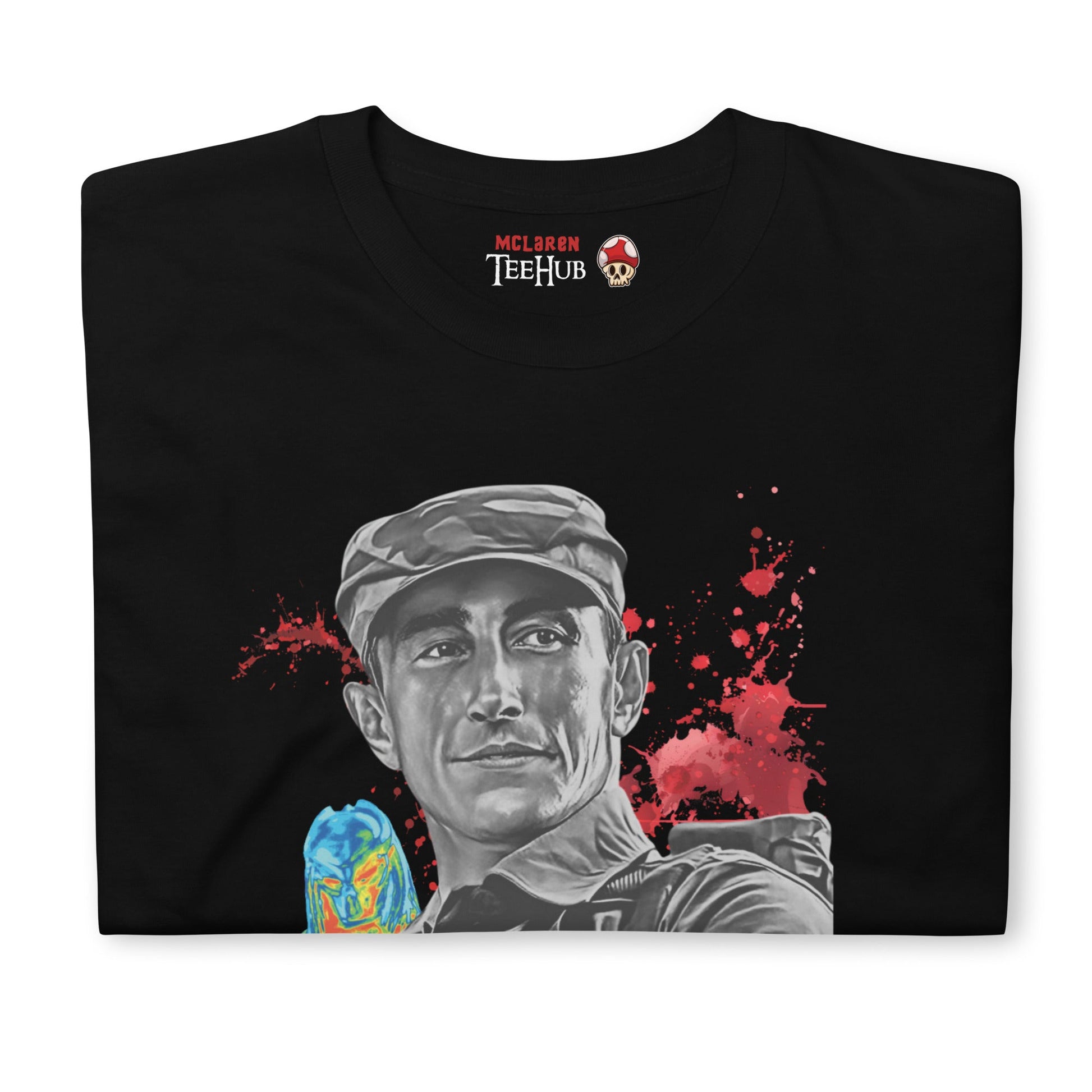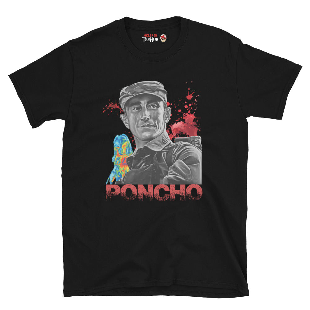 Unlock the thrill of the iconic Predator movie with our exclusive Poncho T-shirt, featuring Richard Chaves' memorable character alongside a subtle depiction of the Predator. This must-have T-shirt is perfect for fans who love classic action films and want to showcase their passion. Crafted for comfort and style, this shirt is a standout piece in any wardrobe. Order now and join the ranks of true Predator enthusiasts
