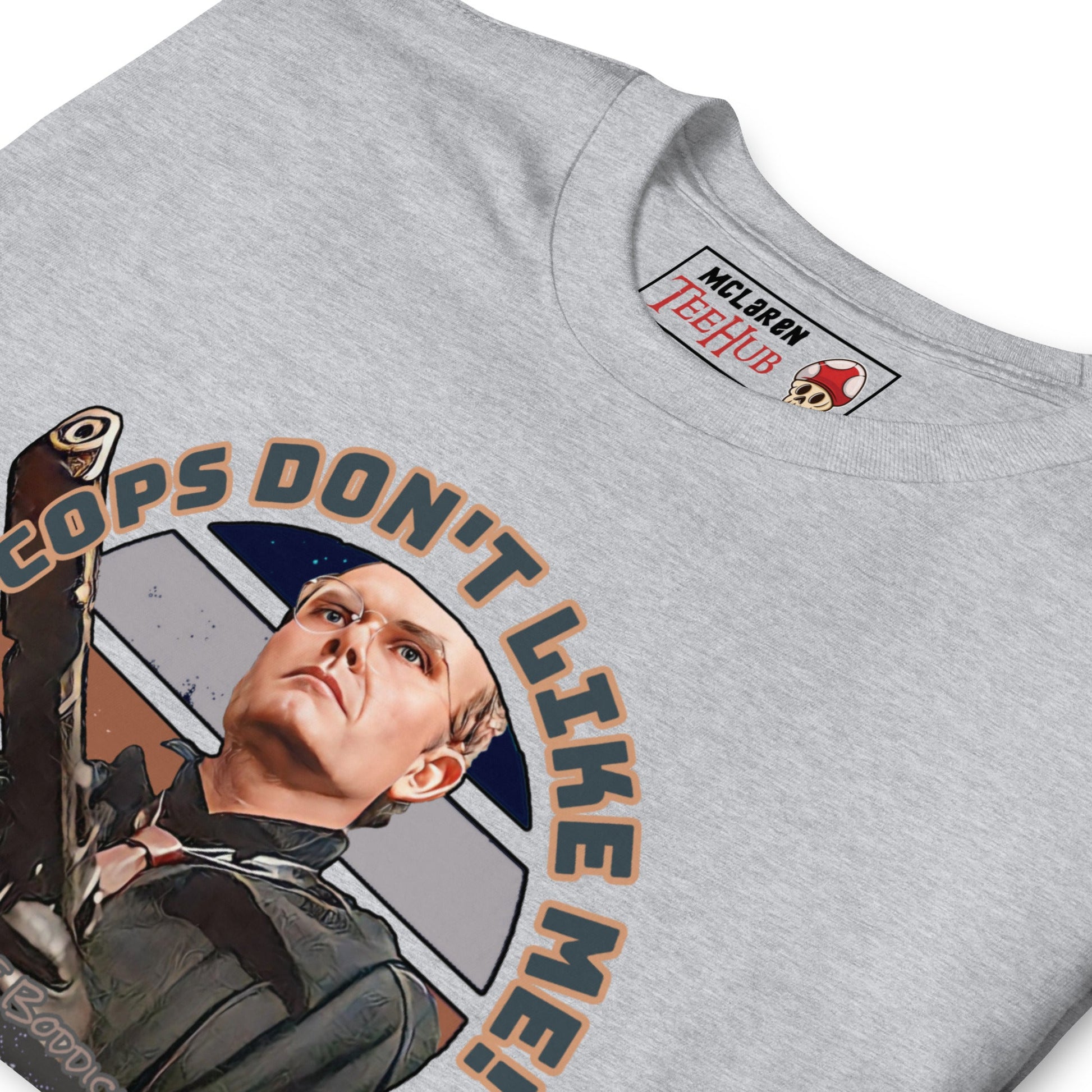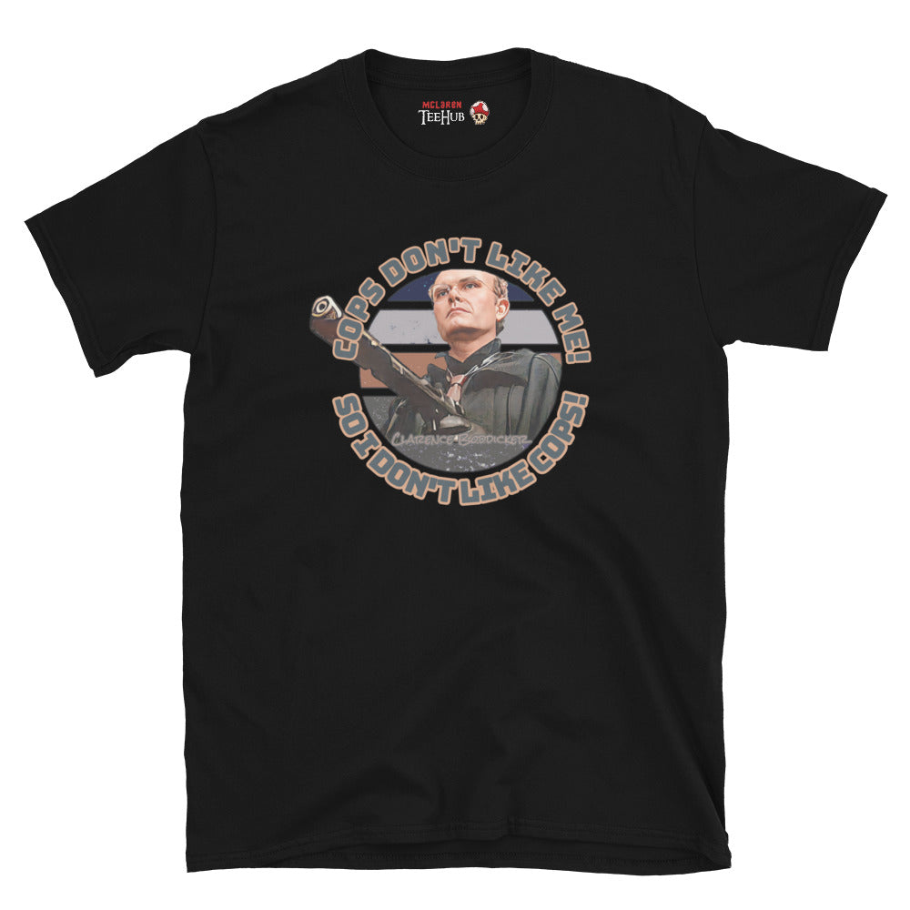 Stand out with this Clarence Boddicker T-shirt from the 1987 sci-fi classic RoboCop! Featuring a powerful image of the iconic villain and his famous line, 'Cops don't like me, so I don't like cops,' this T-shirt is a must-have for RoboCop fans and lovers of 80s movie villains. Made from premium-quality cotton, this RoboCop T-shirt is designed for comfort and durability, making it perfect for daily wear or for showing off at fan events. Ideal for those searching for RoboCop movie merchandise, 80s sci-fi T-shirts, or villain-themed apparel. Get this exclusive tee and let your love for classic 80s action shine!.