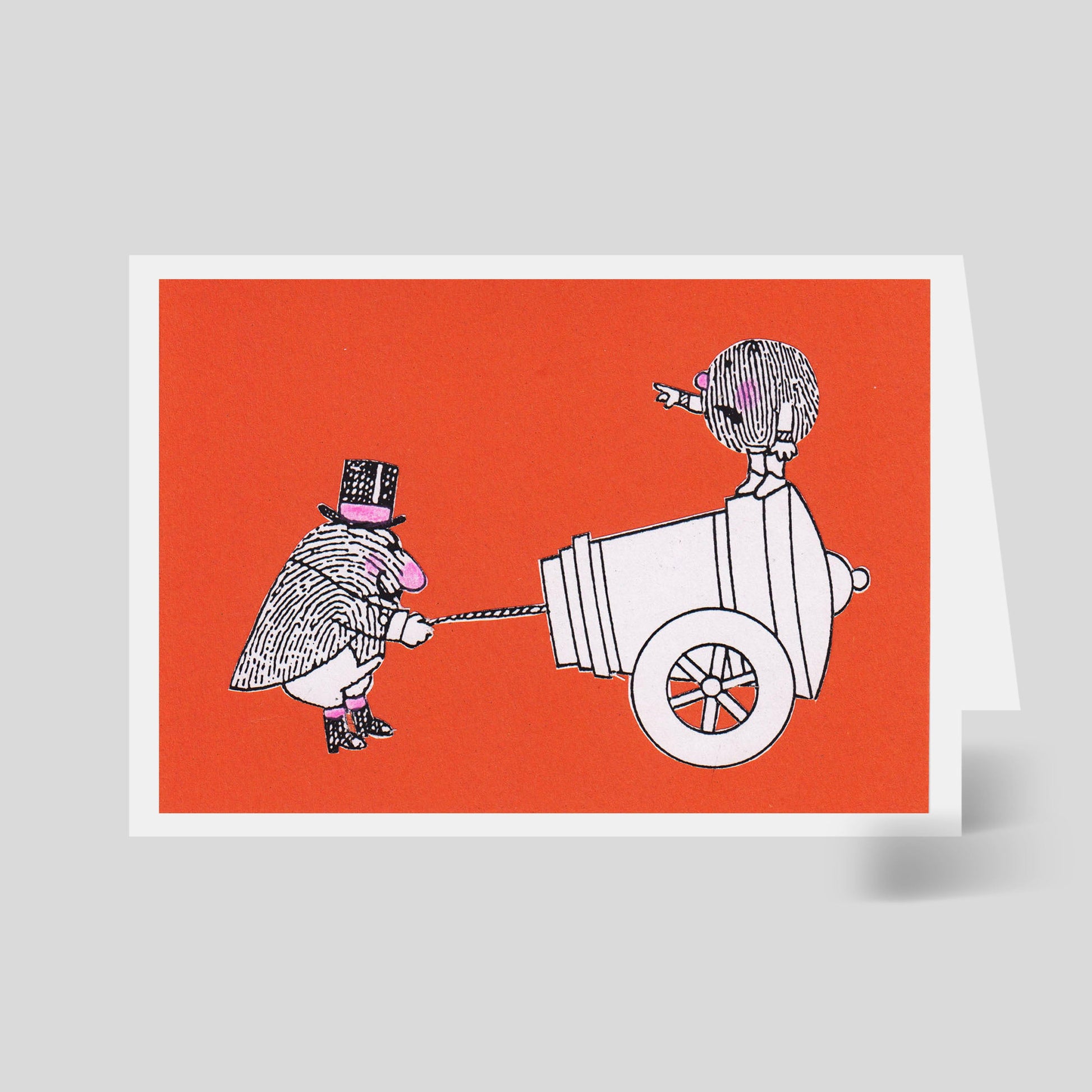 Rodney Peppé (1934 - 2022) was a British author and illustrator in the children's fiction and crafts genres. He was the author and illustrator of more than 80 children's books, publishing his first children's book in 1968 The Alphabet Book with Constable Young Books. Rodney made these images for Art on a Postcard in 2015/2016. His thumbprint characters had been a motive of his since the 1960s.