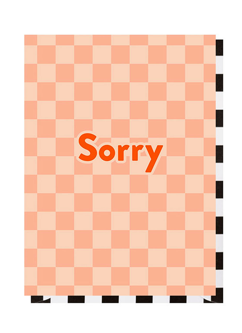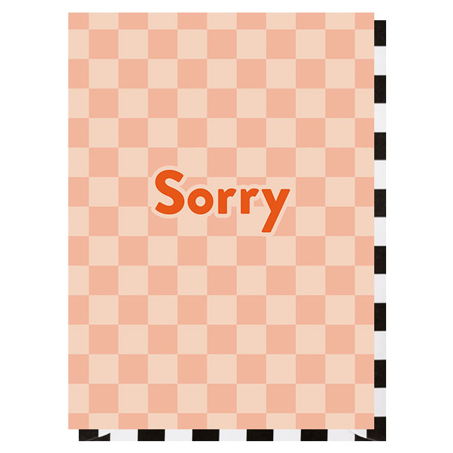 This apology card comes complete with a bespoke matching printed black and white checkerboard envelope.