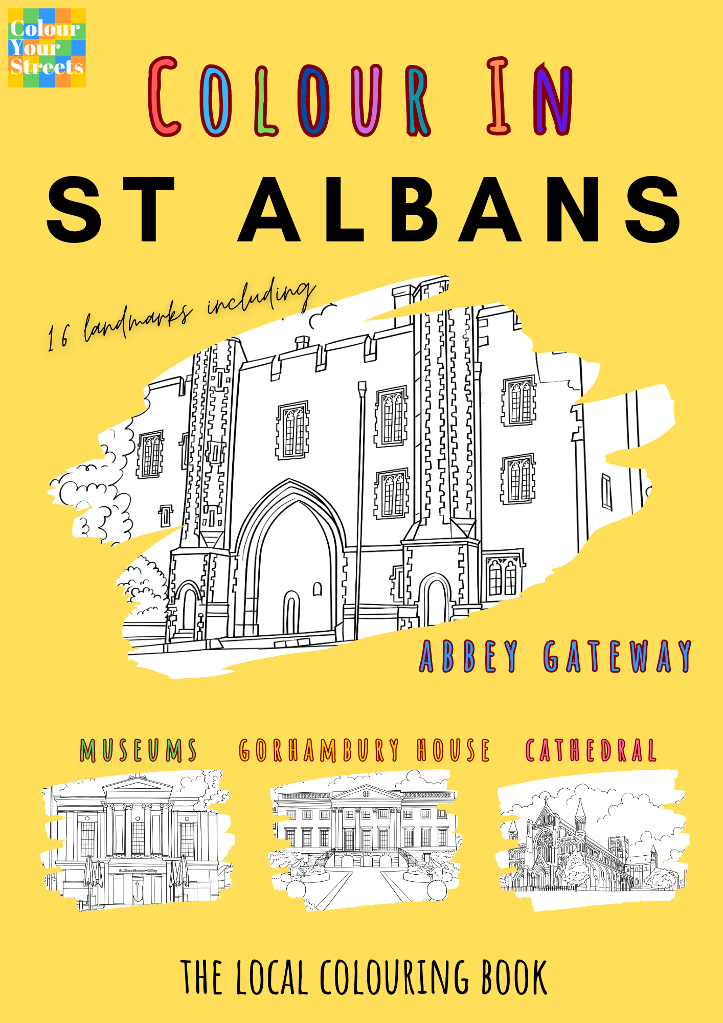 Immerse yourself in St Albans through our meticulously crafted colouring book. This captivating edition features 16 iconic St Albans landmarks, inviting you to bring them to life with your artistic touch. From the imposing Abbey Gateway to the charming Ryder House, each page offers a delightful canvas for your creativity to flourish.