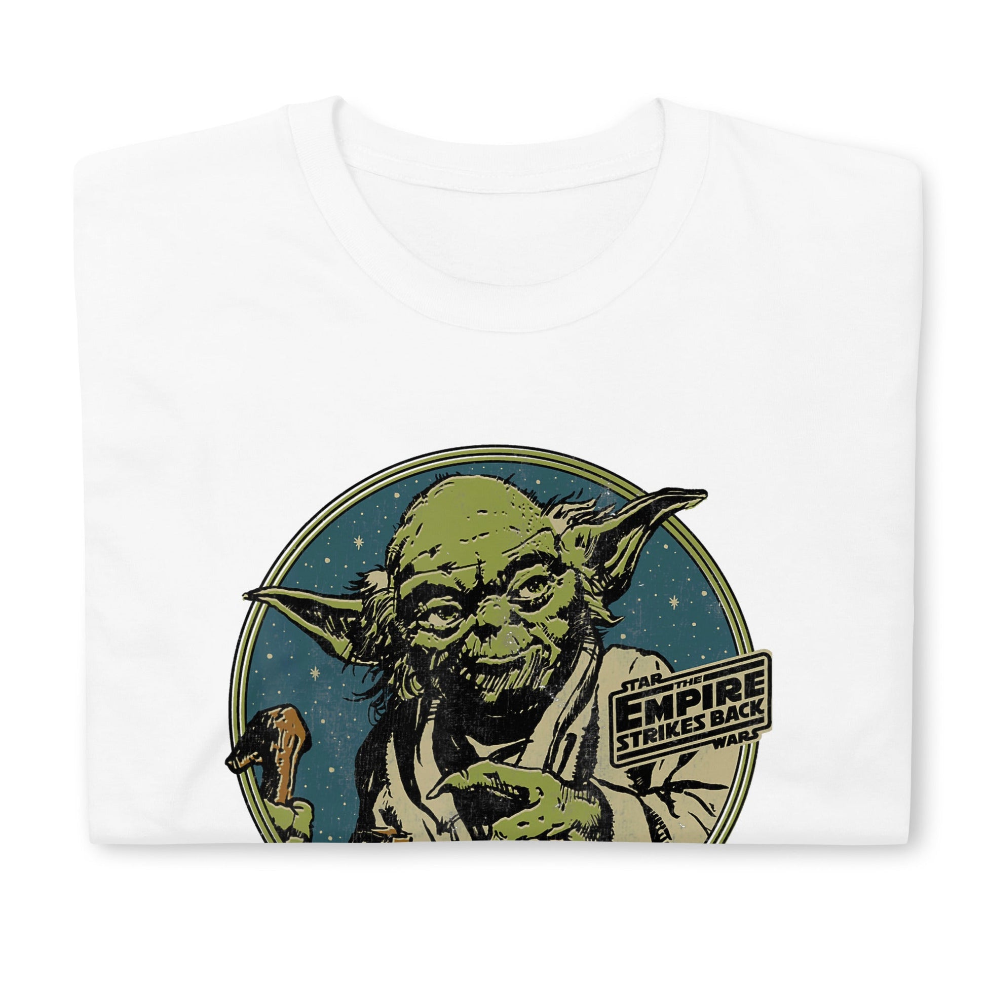 Embrace the wisdom of the galaxy with our retro Yoda T-shirt! Featuring a nostalgic image of the legendary Jedi Master Yoda, this tee is perfect for Star Wars fans who admire his timeless guidance and the power of the Force. Add a touch of classic Star Wars nostalgia to your wardrobe and show off your love for the iconic Jedi. Get your retro Yoda T-shirt today and may the Force be with you.