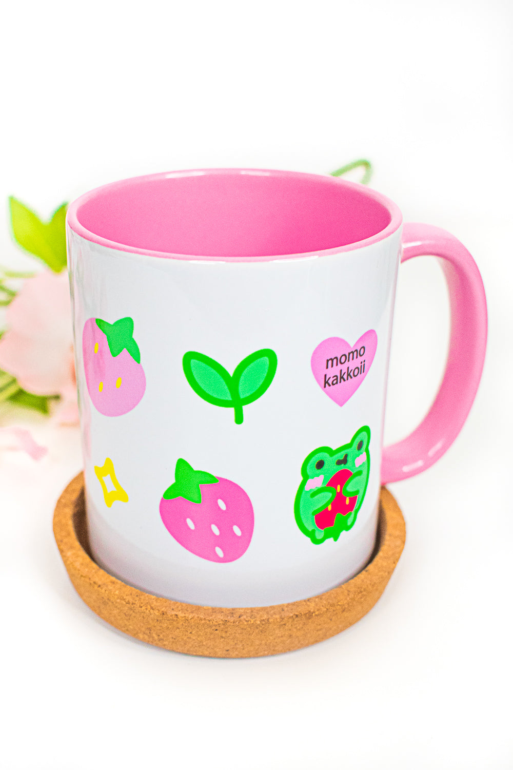 Introducing the mug that's making all the buzz in the pond β the "Strawberry Albert Pink Mug"! It's the perfect blend of cute and cheerful to kick-start your day.