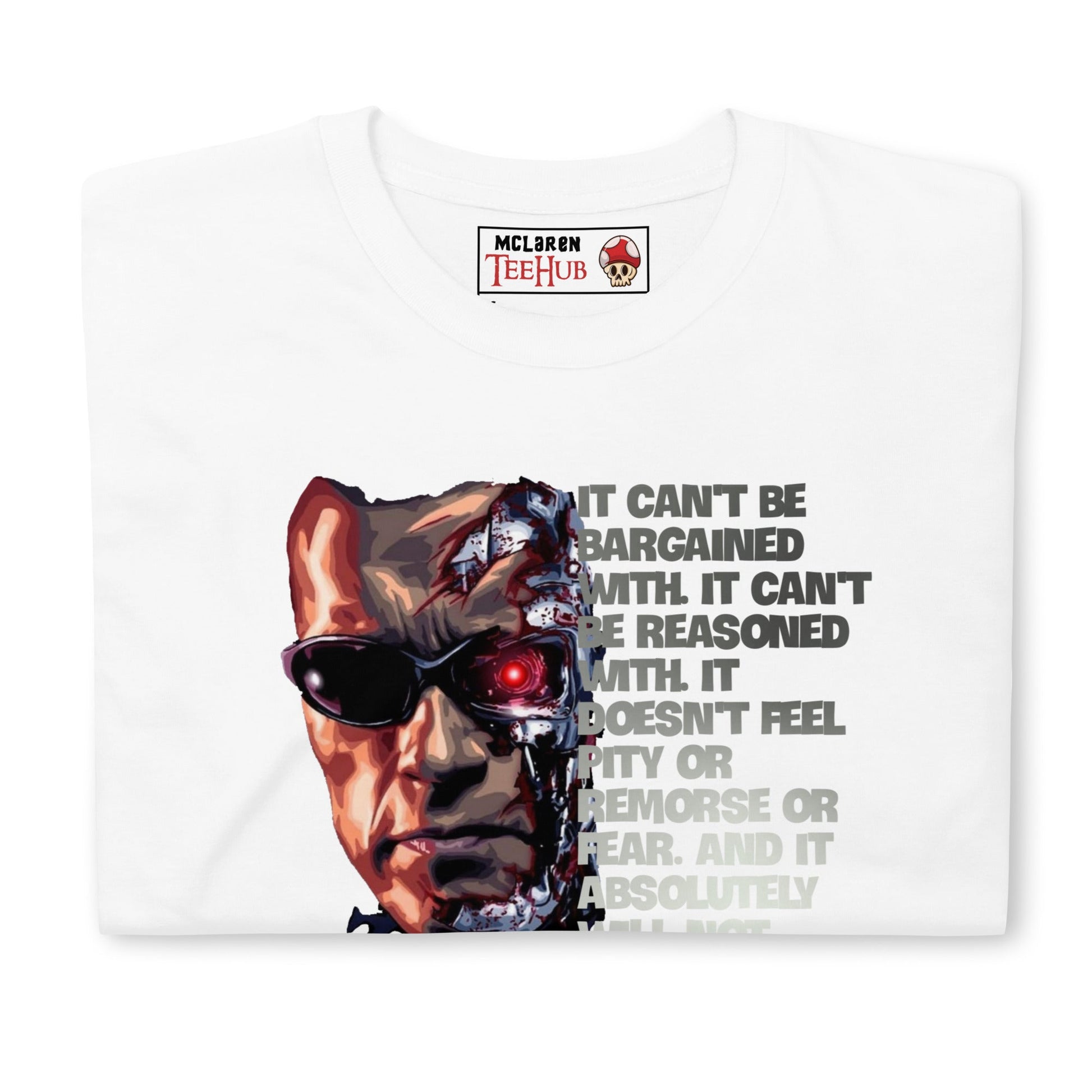 Celebrate the legacy of the iconic 1984 movie The Terminator with this stylish T-shirt featuring legendary characters portrayed by Arnold Schwarzenegger and Linda Hamilton. This striking design captures the intense action and sci-fi elements of the film, making it perfect for fans of classic action cinema. Whether you're a die-hard Terminator enthusiast or just love timeless movies, this Terminator T-shirt is a must-have addition to your collection. Wear it proudly and show off your passion for one of the greatest sci-fi films of all time!