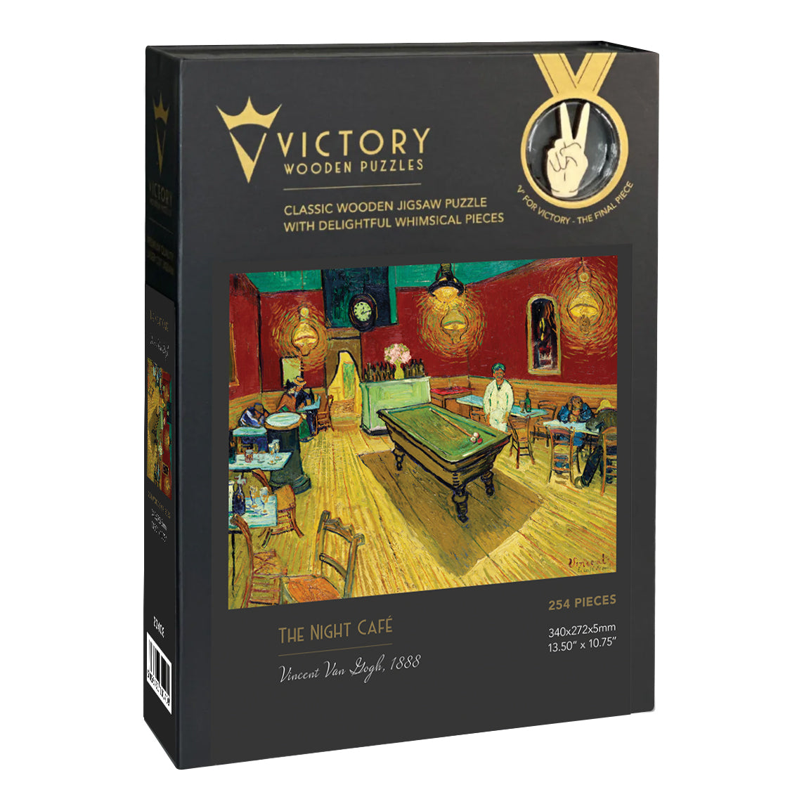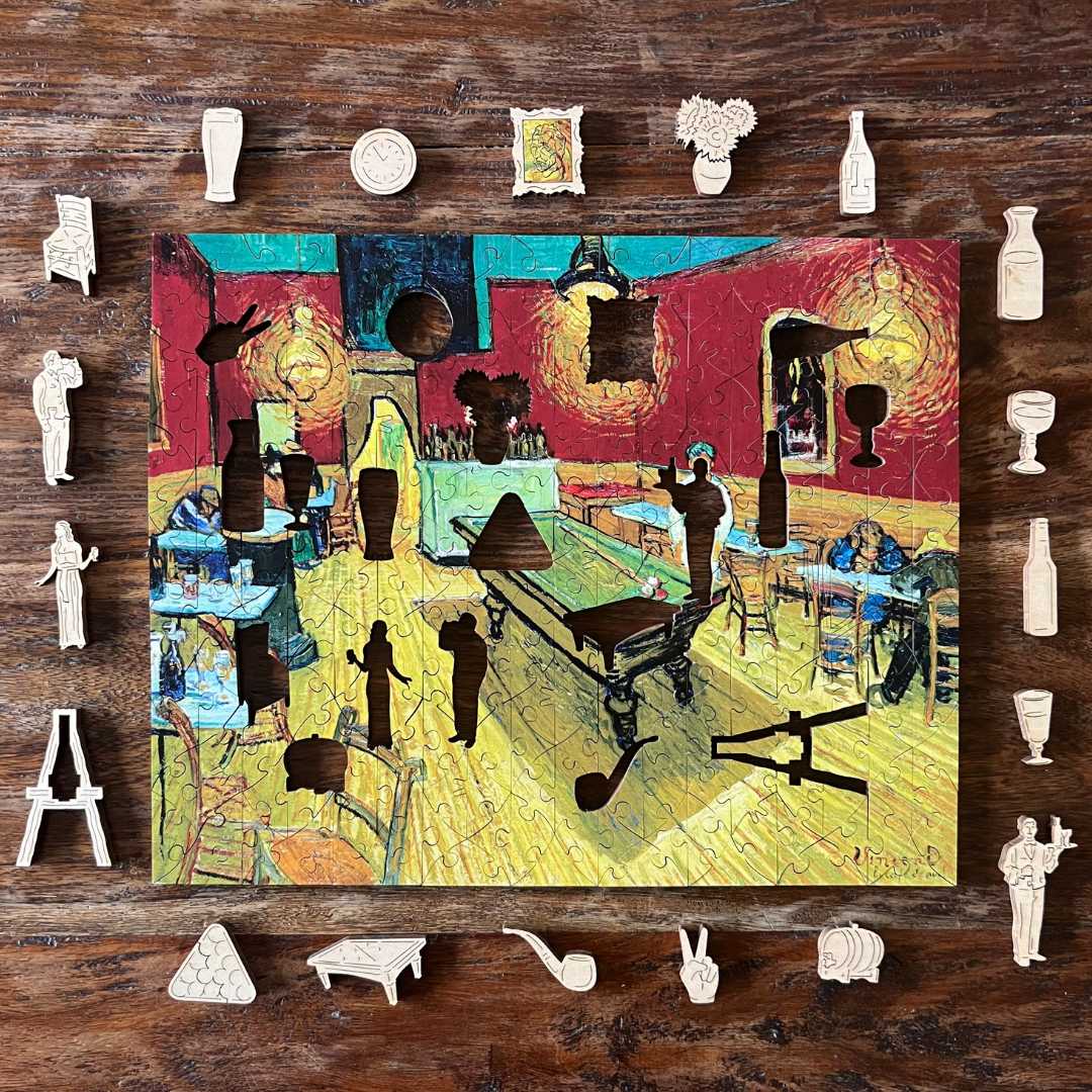 Immerse yourself in the vibrant world of Vincent Van Gogh with The Night Cafe wooden jigsaw. This beautiful masterpiece features 254 irregular and whimsical shaped pieces, allowing you to recreate the iconic interior of the famous French Cafe in Arles. Crafted with precision and attention to detail, this fine art puzzle is a must-have for puzzle enthusiasts and art lovers alike.