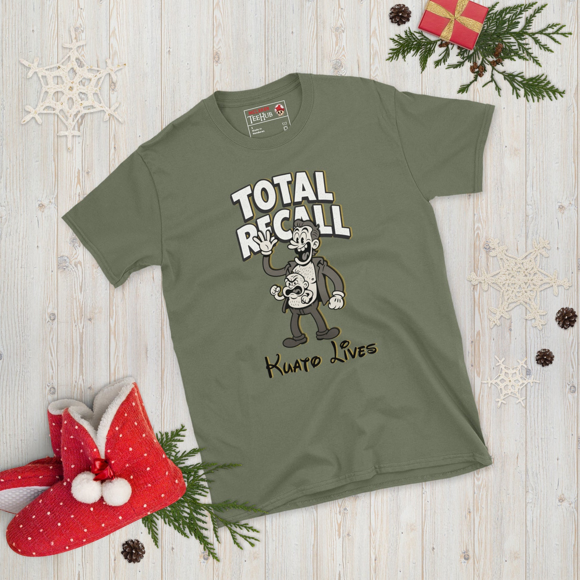 Total Recall T-shirt, Kuato Lives shirt, Arnold Schwarzenegger movie tee, Mars mutant cartoon shirt, retro sci-fi shirt, 90s action movie apparel, rubber hose parody, vintage cartoon style tee, McClaren Tee Hub exclusive, cult classic movie merchandise.