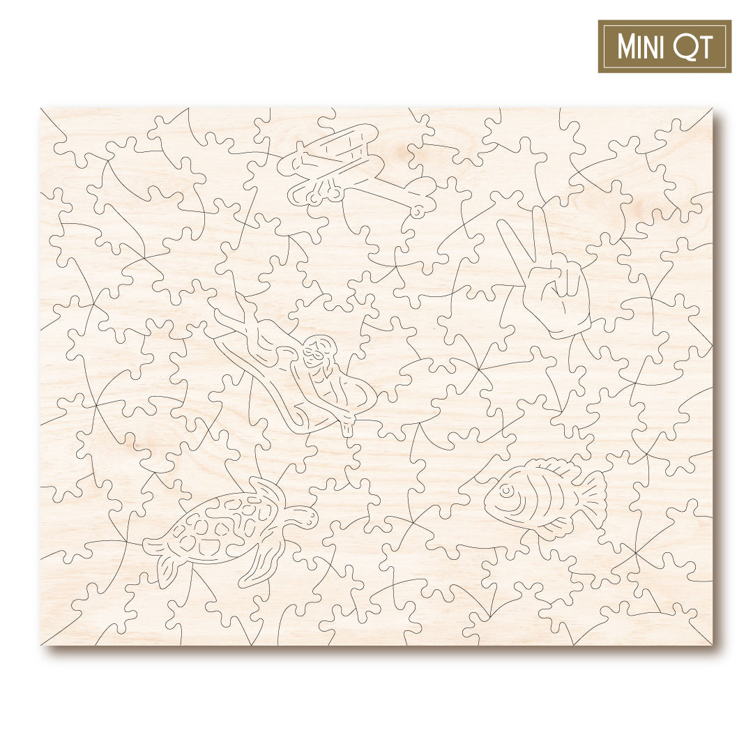 Our MINI QT puzzles are laser cut from thick, 4mm plywood and include 5 whimsies - they make a great puzzle snack!