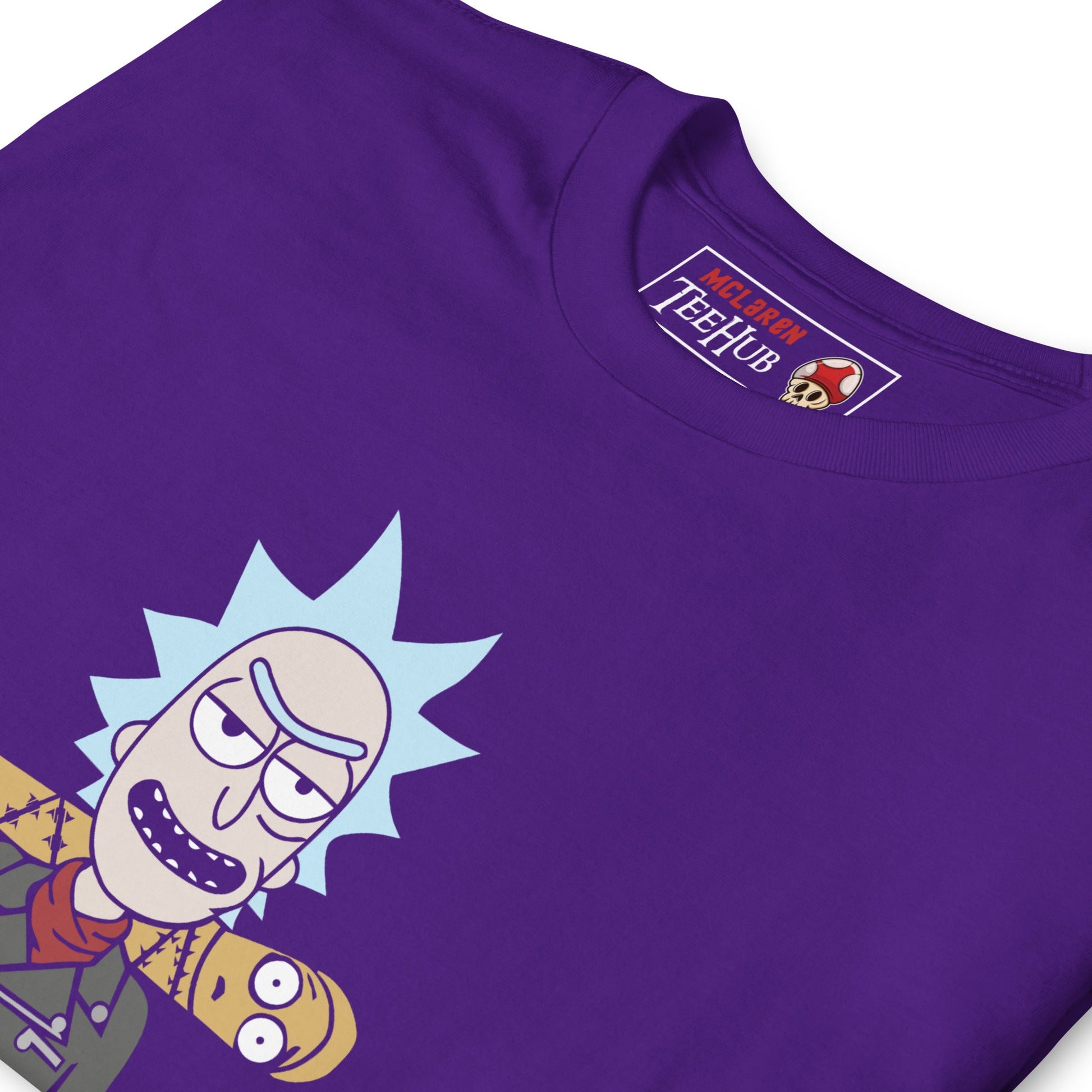 Discover the ultimate crossover with our 'Rick Grimes' T-shirt, merging Rick and Morty with The Walking Dead. This unique shirt features an image of Rick Sanchez styled as Negan, holding a spiked bat, perfectly blending sci-fi and zombie apocalypse themes. Made from premium cotton, this T-shirt is perfect for binge-watching or cosplay. Stand out in any crowd with this iconic mashup, designed for fans of Rick and Morty and The Walking Dead. Elevate your fandom and shop now for this exclusive T-shirt!
