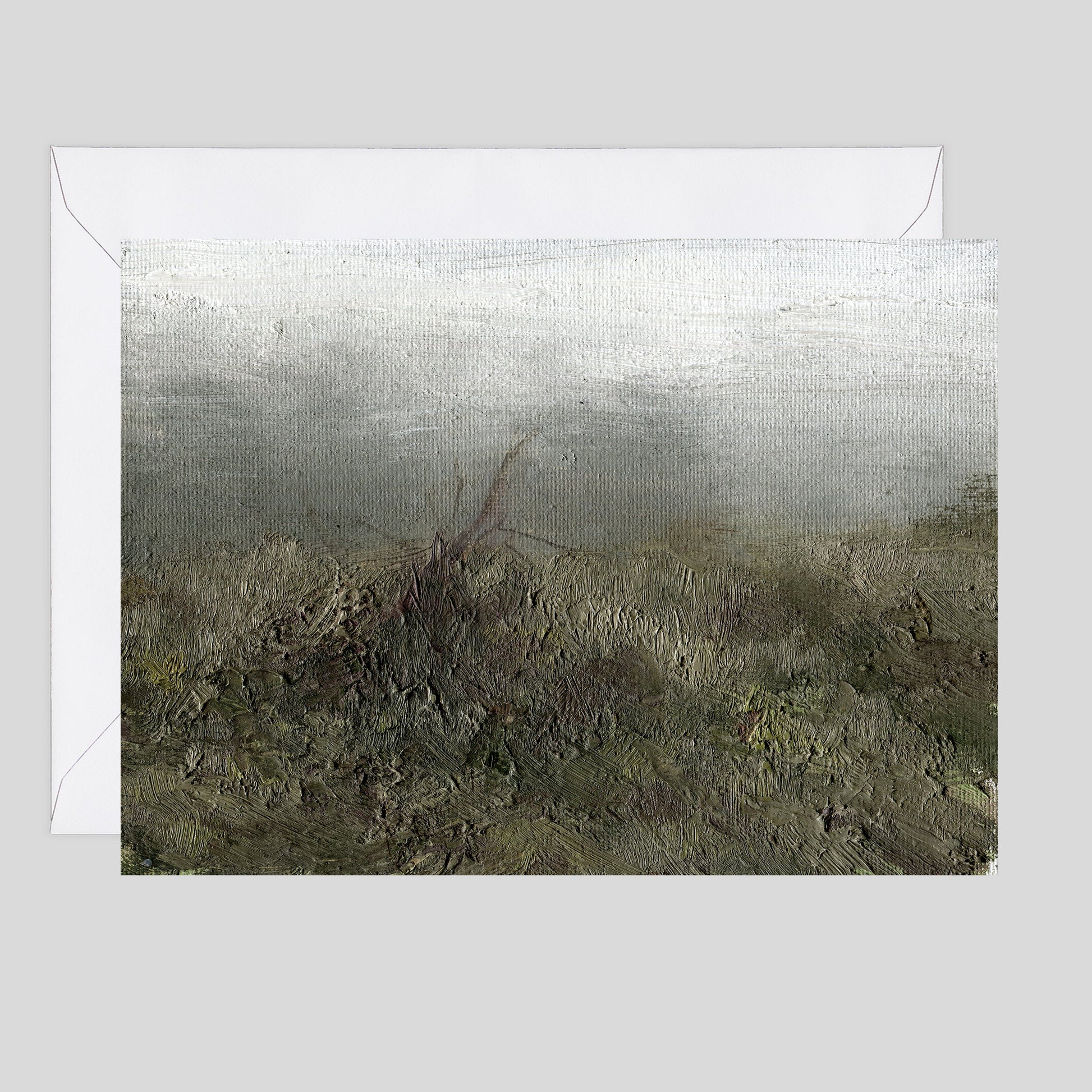 Born in Essex in 1994, William Reinsch is an emerging artist currently studying at City & Guilds School. A talented figurative painter, William is best known for his haunting landscapes and portraits, painted with expressive brushstrokes. The foggy landscapes reproduced on these cards are a recurring motif across the artist’s artwork.