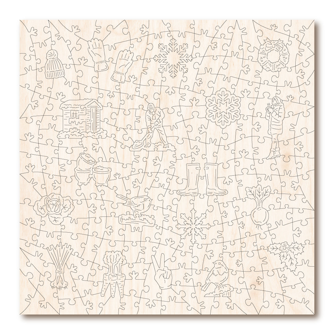 Experience the magic of winter with Winter Garden Robin, a stunning wooden jigsaw puzzle. With 238 irregular and whimsical shaped pieces, this puzzle captures the beauty of a winter garden, complete with snow-covered red berries, trees, and a charming robin. Get lost in the intricate details as you piece together this delightful winter scene. Perfect for puzzle enthusiasts and nature lovers alike.
