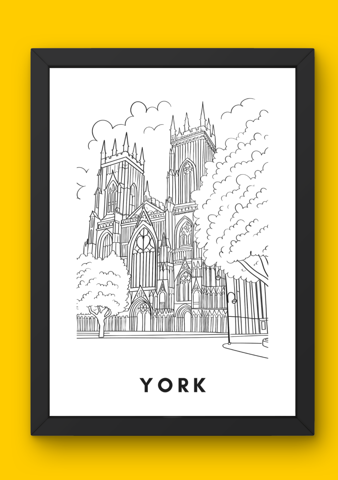 Beautiful wall art / poster of York Minster in York. The poster can be left as is, or coloured in as preferred.