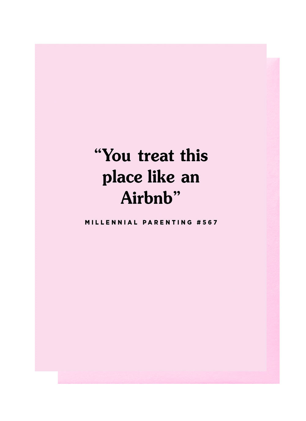 As part of our Millennial Wisdom range, we've updated the age-old parental complaint to "You treat this place like an Airbnb".