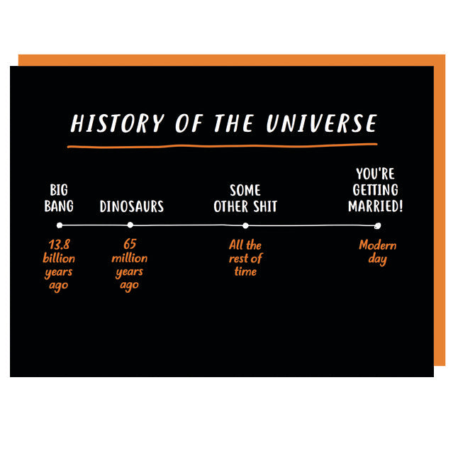 This funny wedding card marks the momentous occasion in the context of the universe's biggest moments.